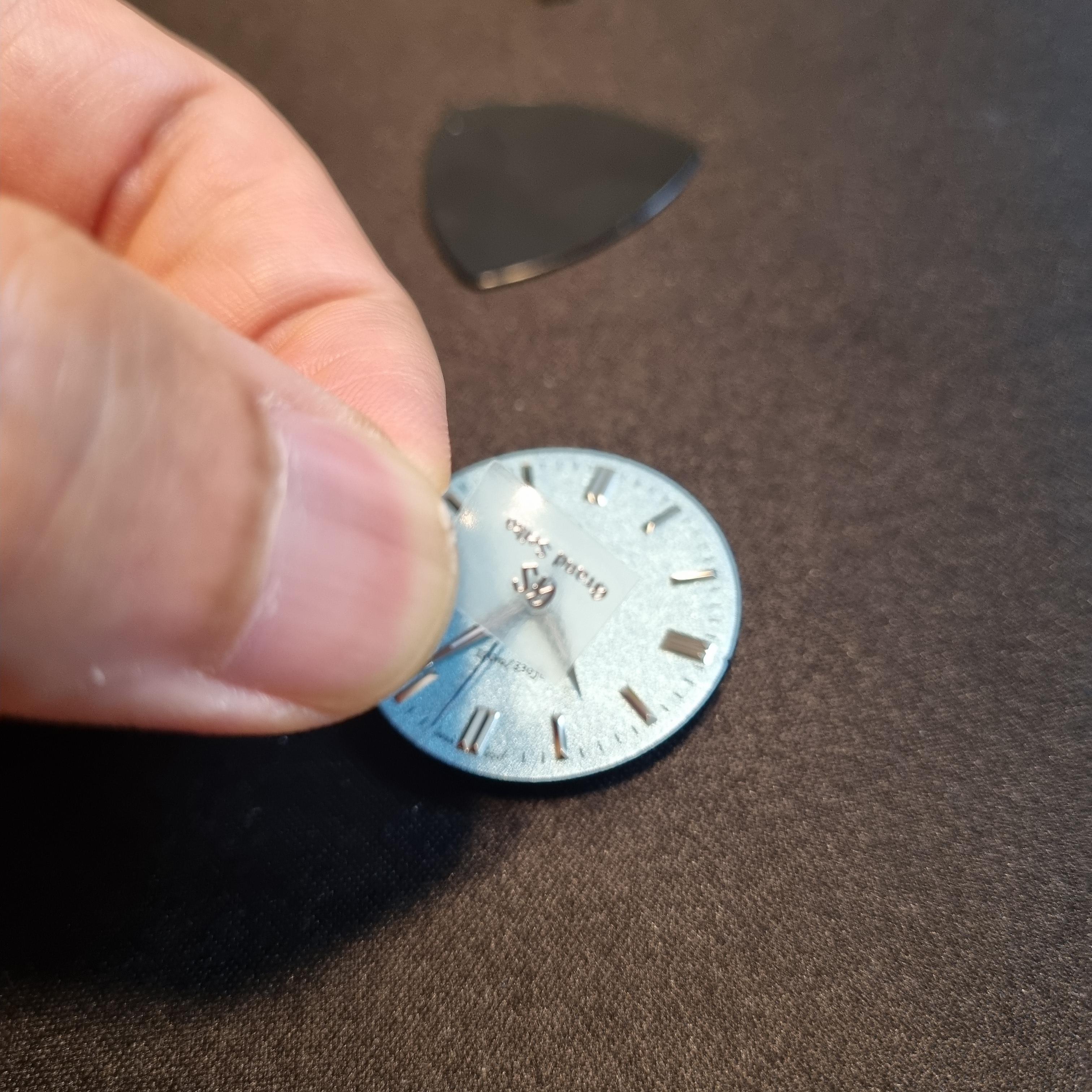 이 조그마한 스티커를 시계 다이얼 중앙에 수평선을 맞춰서 붙히는게 세상 어려울지 몰랐다..
