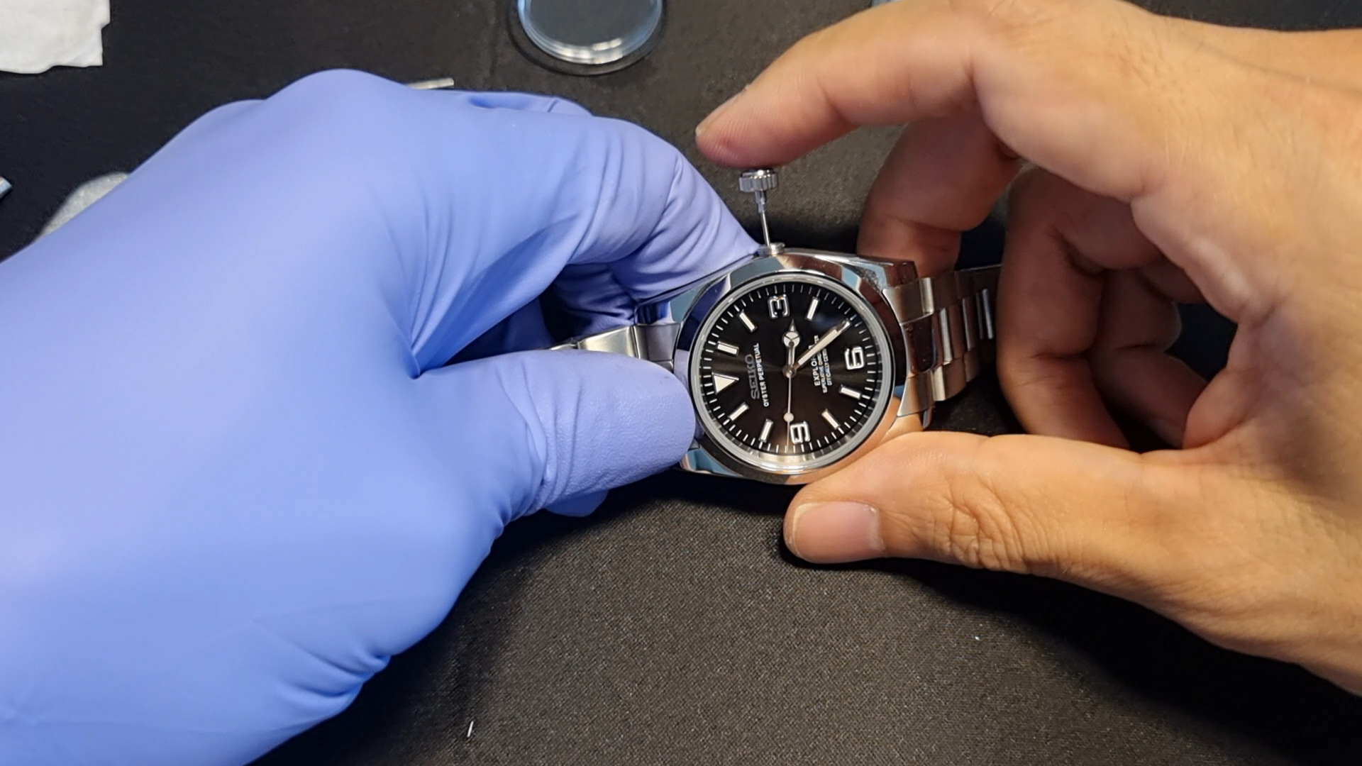 다행히 이번 익스플로러 다이얼은 데이트창이 없어 그냥 막 끼워줬다. 하지만 12시 정각으로는 맞춰 끼워줬다. 그래야 시,분침 이 매정각마다 딱딱 맞는다.