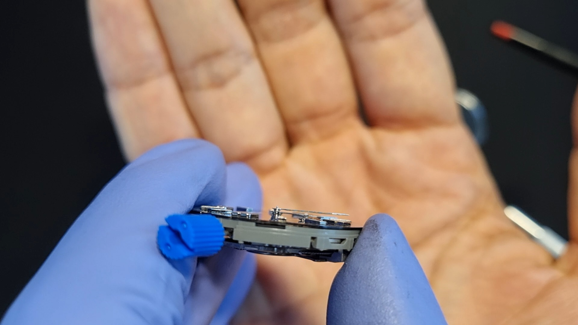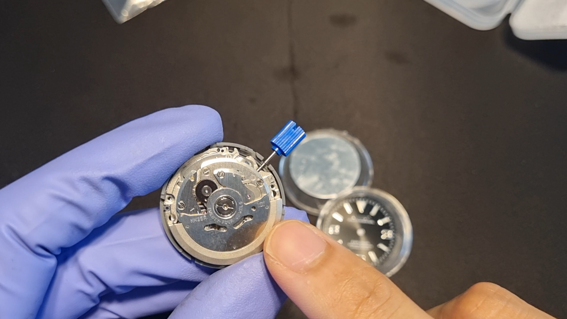 핸즈 결합이 최고 난이도라고 했지만, 이 용두 결합 단계는 심리적 최고 난이도이다. 왜냐면 용두 결합시에는 필연적으로 용두 길이 조정을 위해 용두를 잘라줘야하는데 이때 조금만 많이 잘라버리면 그 용두는 폐기처분이다..
