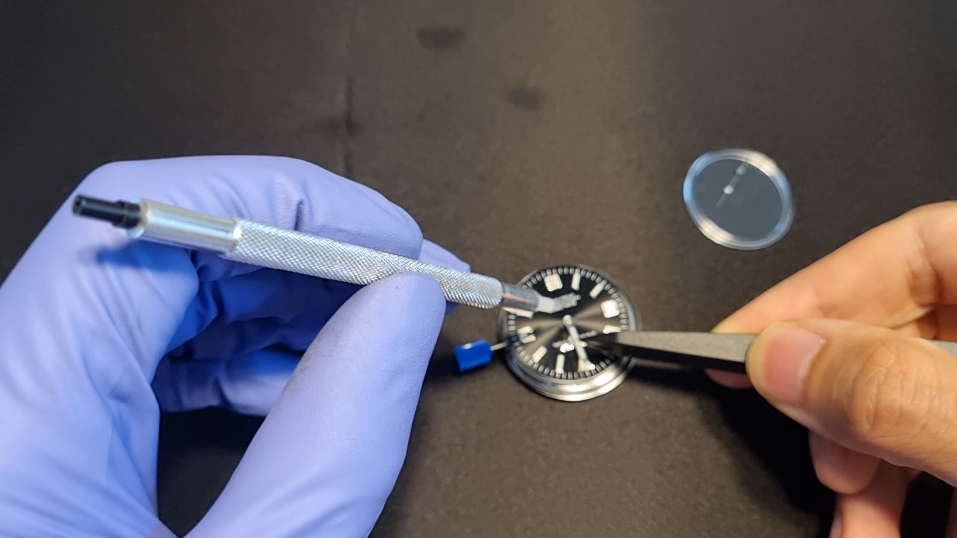 크기 순서대로 시침-분침-초침 순서로 무브먼트 기둥과 결합시켜줘야 한다.