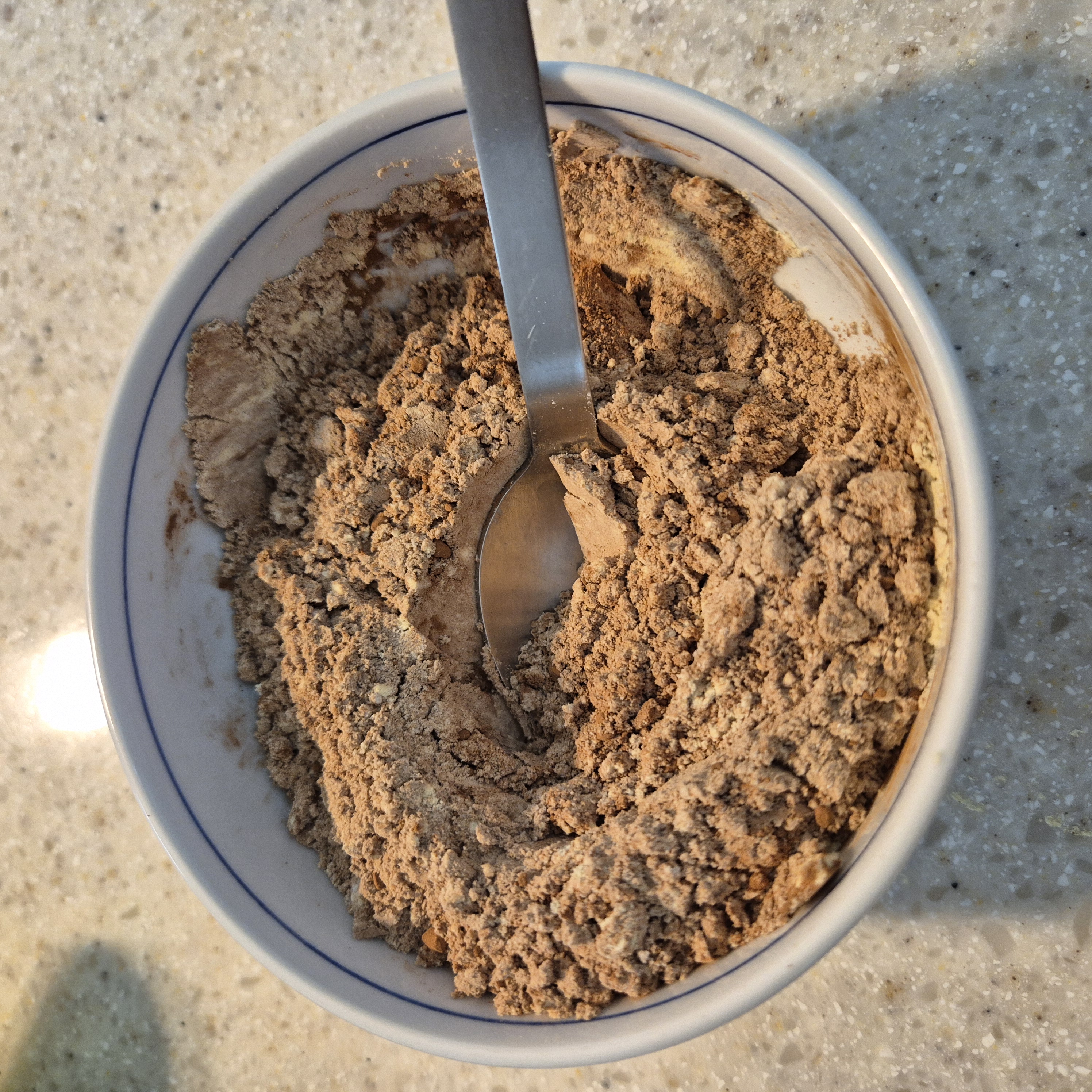카카오파우더를 일정부분 넣고, 알룰로즈를 조금씩 추가하며 적절하게 섞이도록 비율을 조정한다.