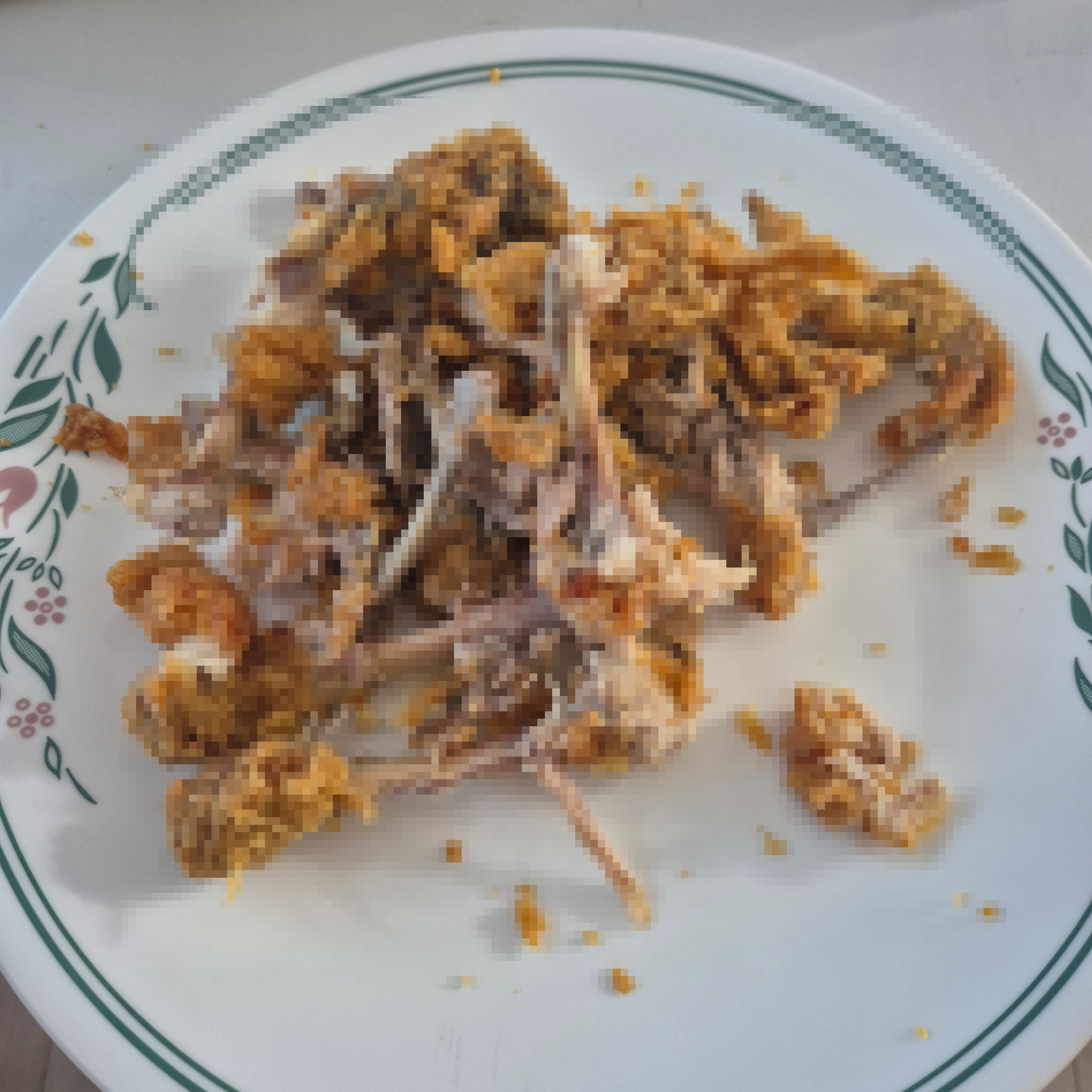 일단 한마리 마무리하고 남은 치킨 닭 뼈...