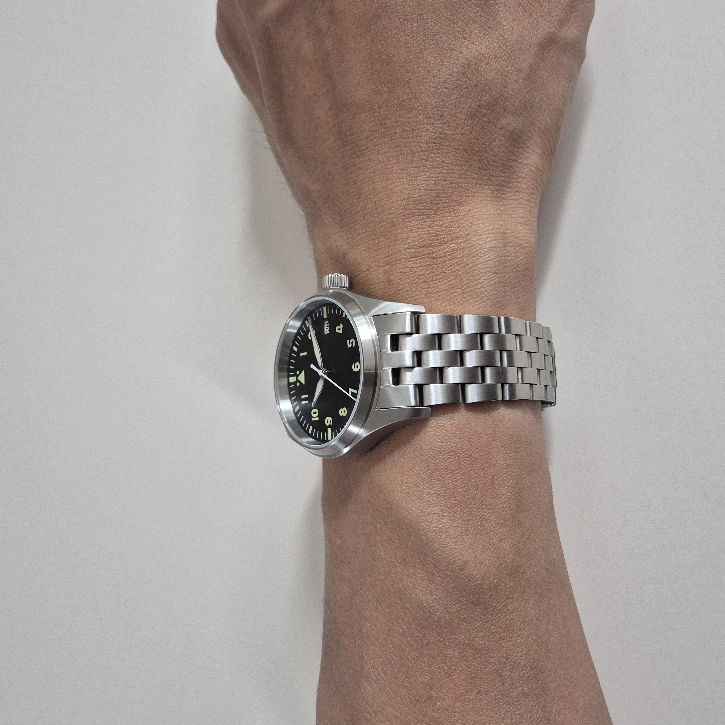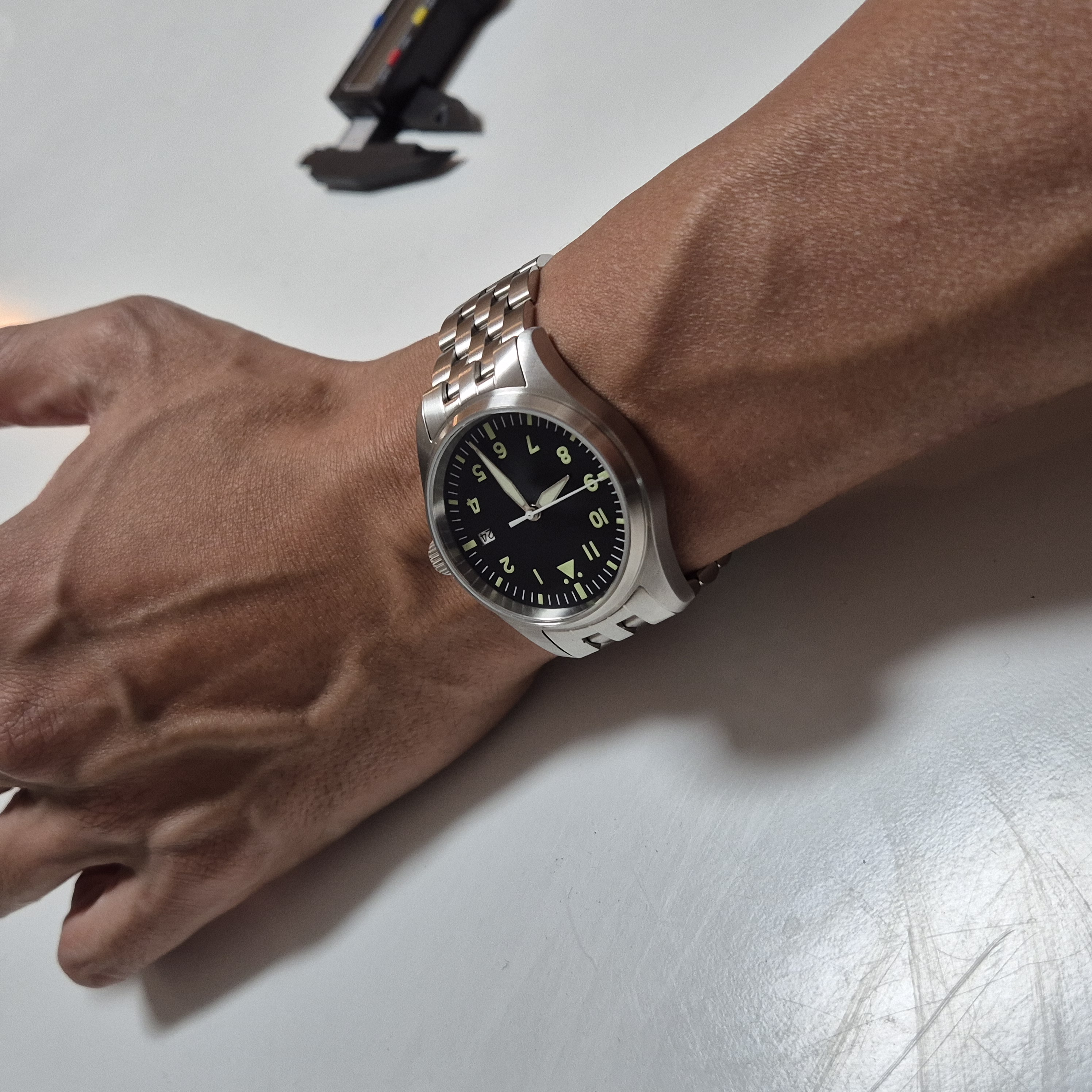더욱이 아디스다이브라는 알리 브랜드를 딱히 티내고 싶지 않은 사람에게, IWC를 카피한 시계라는 오명이 껄끄러운 사람에게 이런 플리거의 특징은 좋은 방패가 된다.
