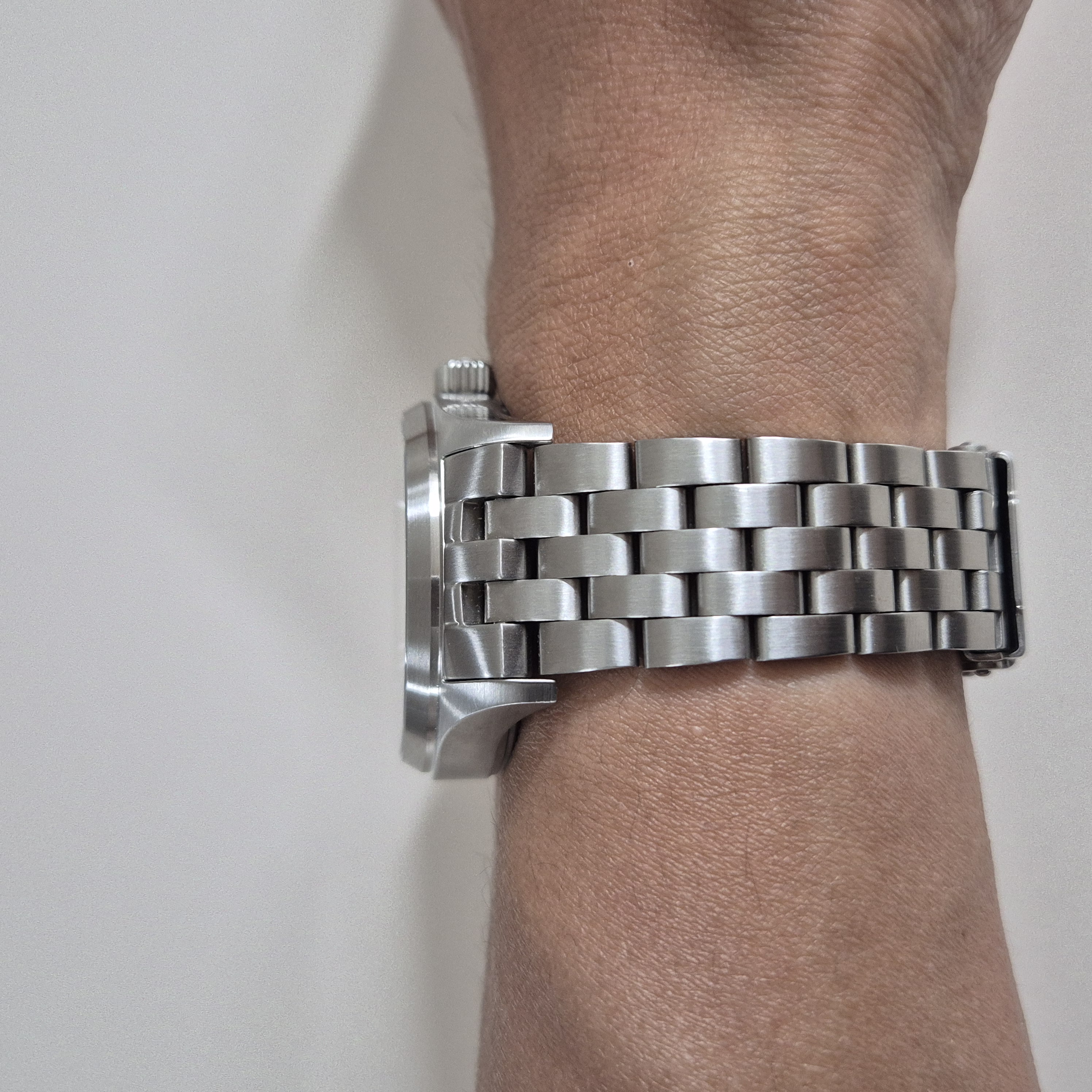 7만원짜리 시계치고 이 브슬 품질이 너무 좋다. 엄청 부드럽게 마감된건 아니지만 날카로운 부분없고, 무광 브러쉬도 일정하게 잘 되었다.