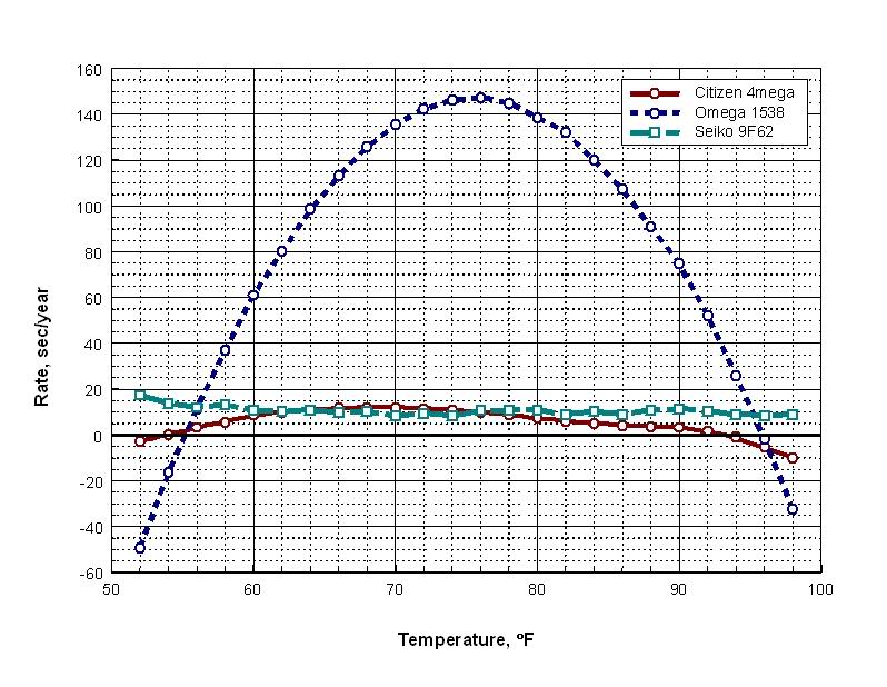 직관적인 비교의 한 예로써 온도변화에 따른 시간정확도이다.