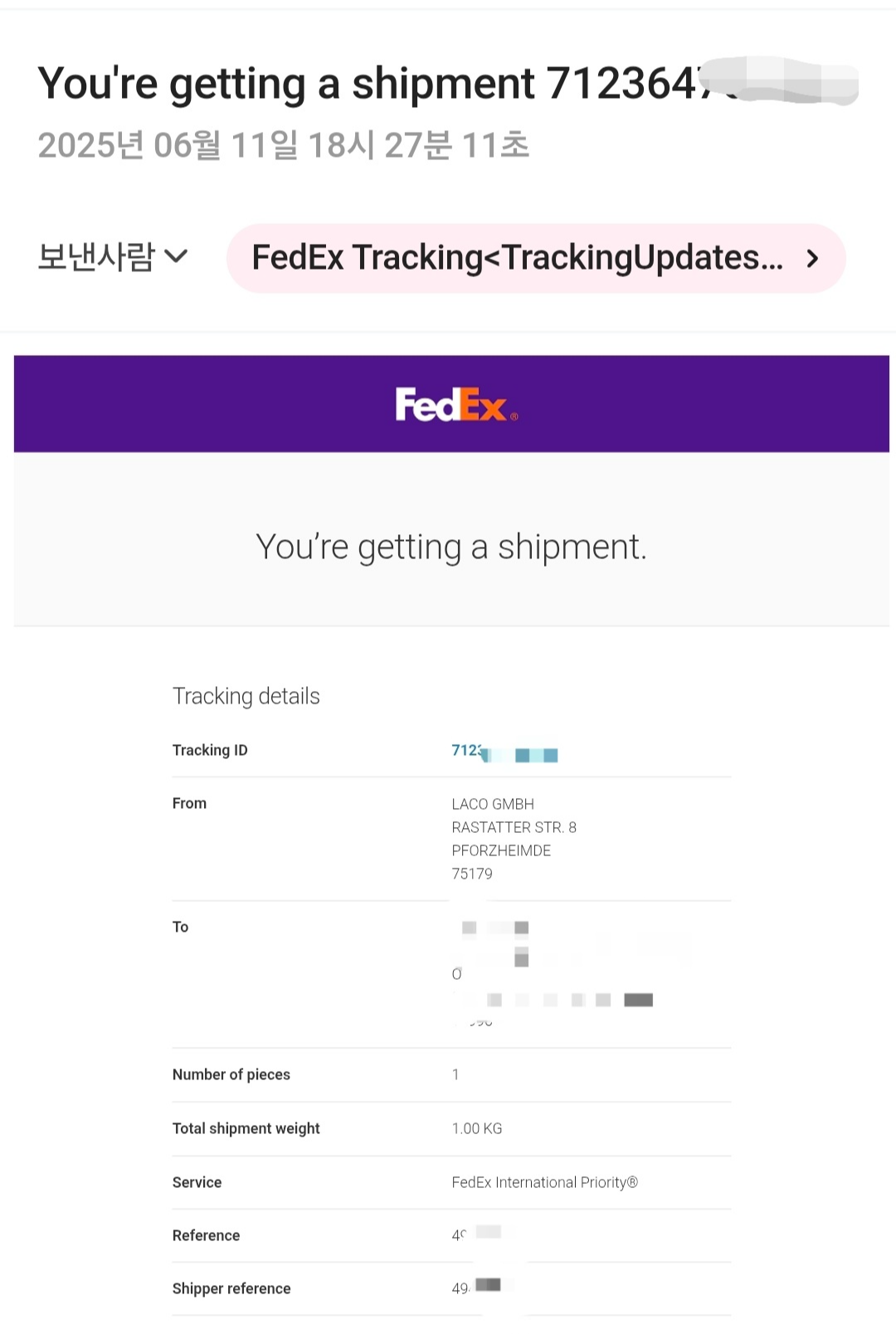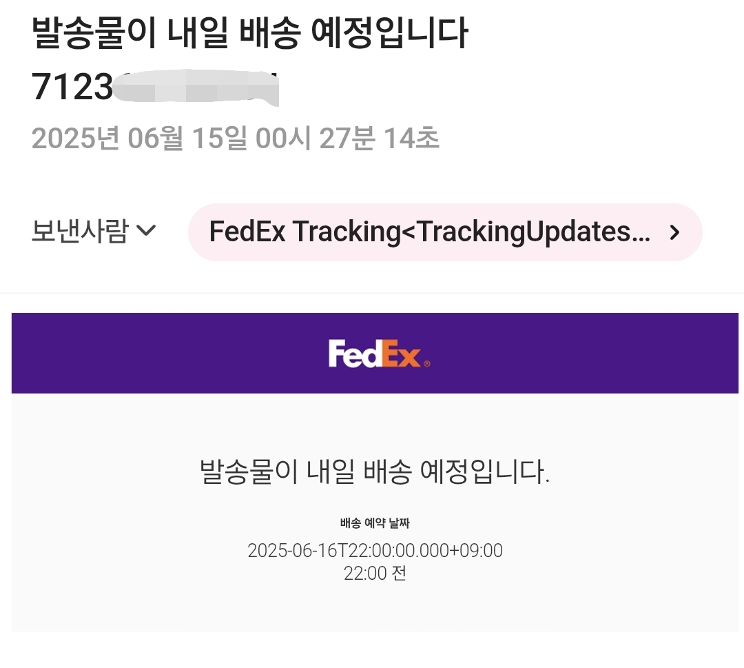 한-EU FTA라고 저절로 관세가 면세 되진 않는다. 일단 아래와 같이 페덱스에서 물건이 배송된다고 시스템적으로 메일이 온 후,