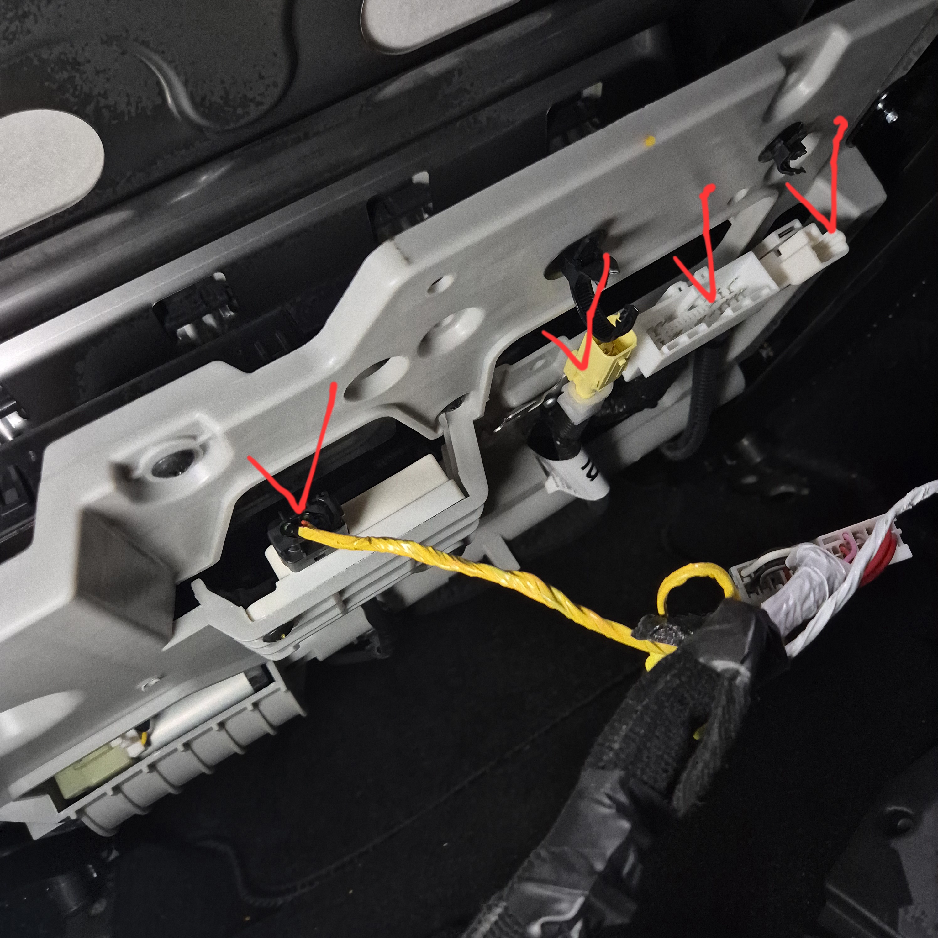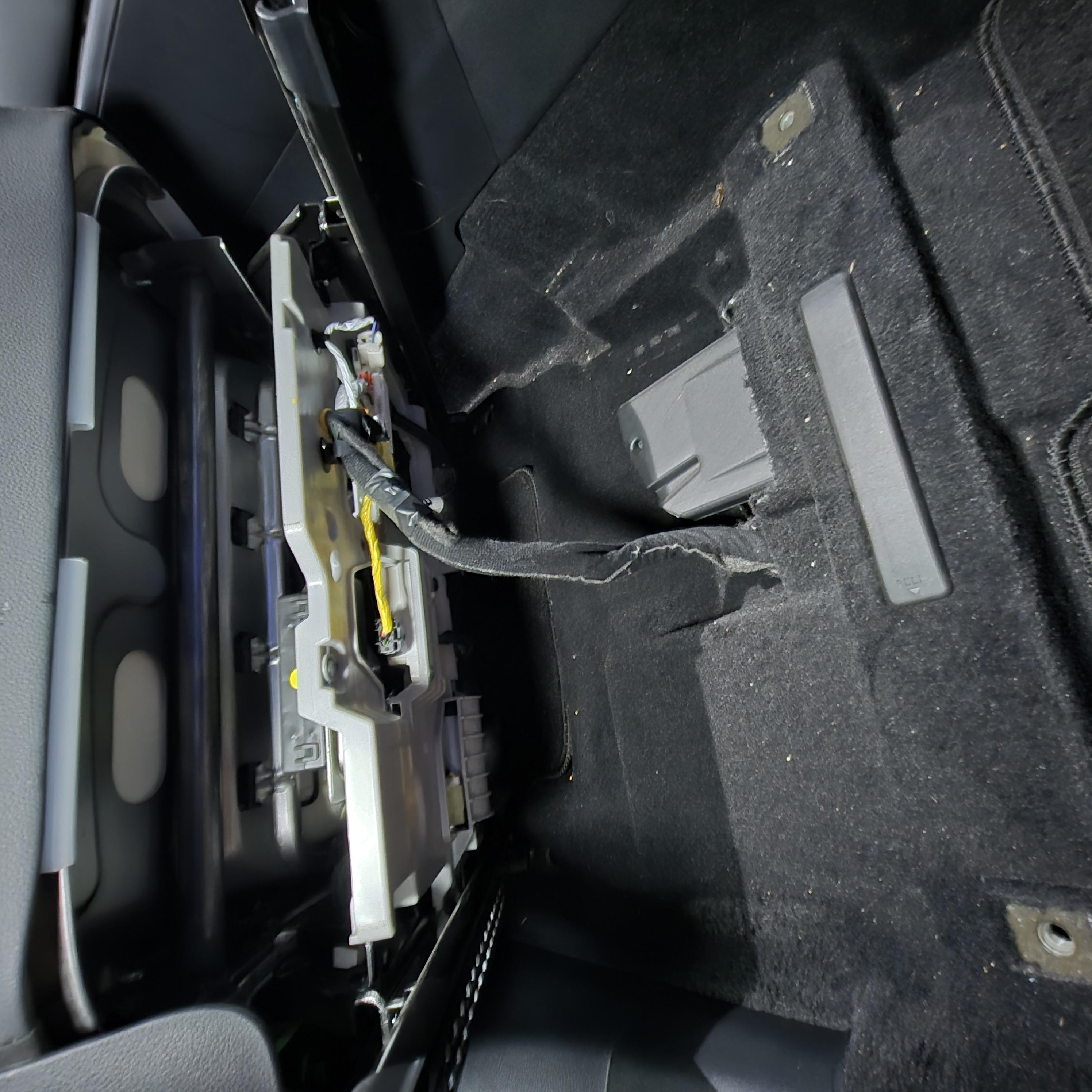그럼 이제 조수석은 자유다. 조수석 앞부분을 들어올리면 위 사진처럼 전선이 여러 가지가 연결되어 있다. 조수석 분리를 위해서는이 전선을 모두 다 분리시켜 준다. 케이블타이 같은 곳으로 두 개가 묶여 있는데 어쩔 수 없다. 니퍼로 끊어 준다. 나중에 다시 케이블타이로 묶어 주면 된다.