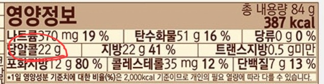 바로 저 지뢰같은 말티톨. 당뇨 커뮤니티에서는 이미 악명이 높은 놈이다. 말티톨은 설탕처럼 단맛을 내지만 아직 우리나라 식품 영양 정보 표기해서는 당류로 분류하지 않는다. 그래서 저렇게 당류 0g 이라고 당당히 소비자를 기만할 수 있는 것이다..