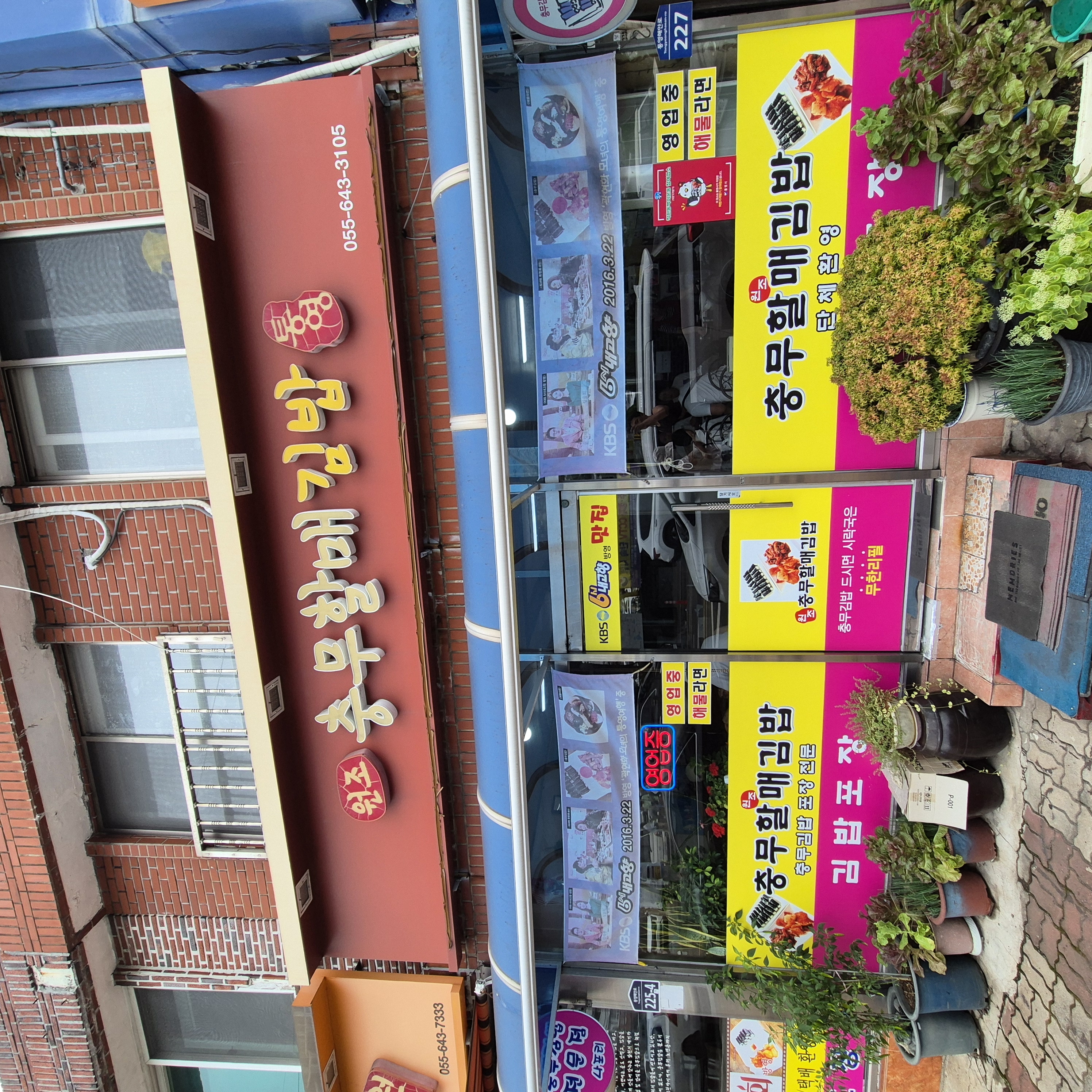 여객터미널 근처에 충무김밥집 중 하나. 해물 라면과 함께 먹었는데. 독특한 점은 잘 모르겠다.