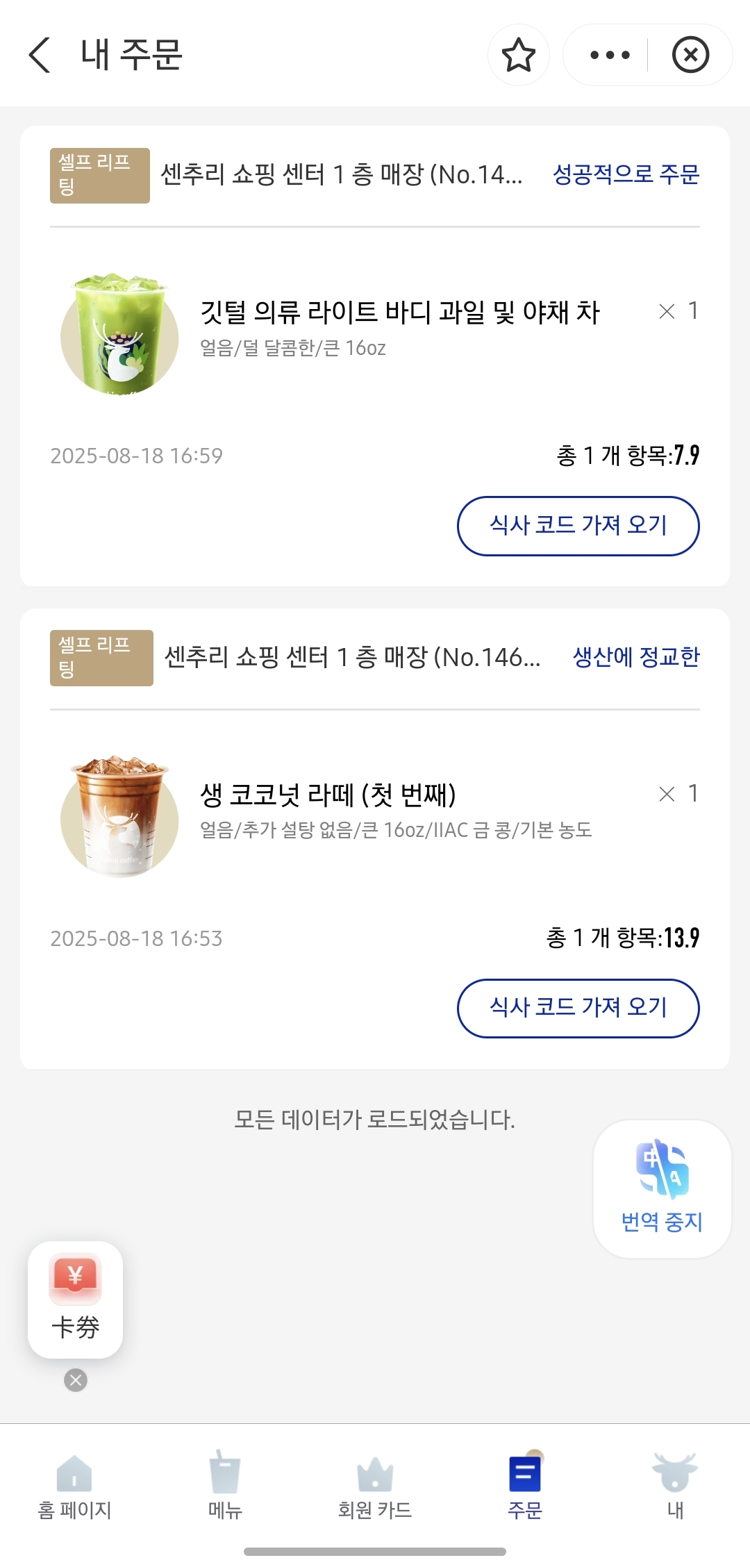 그럼 나는 나의 QR 코드와 주문 번호를 직원에게 보여 주며 나의 음료를 수령하면 된다.