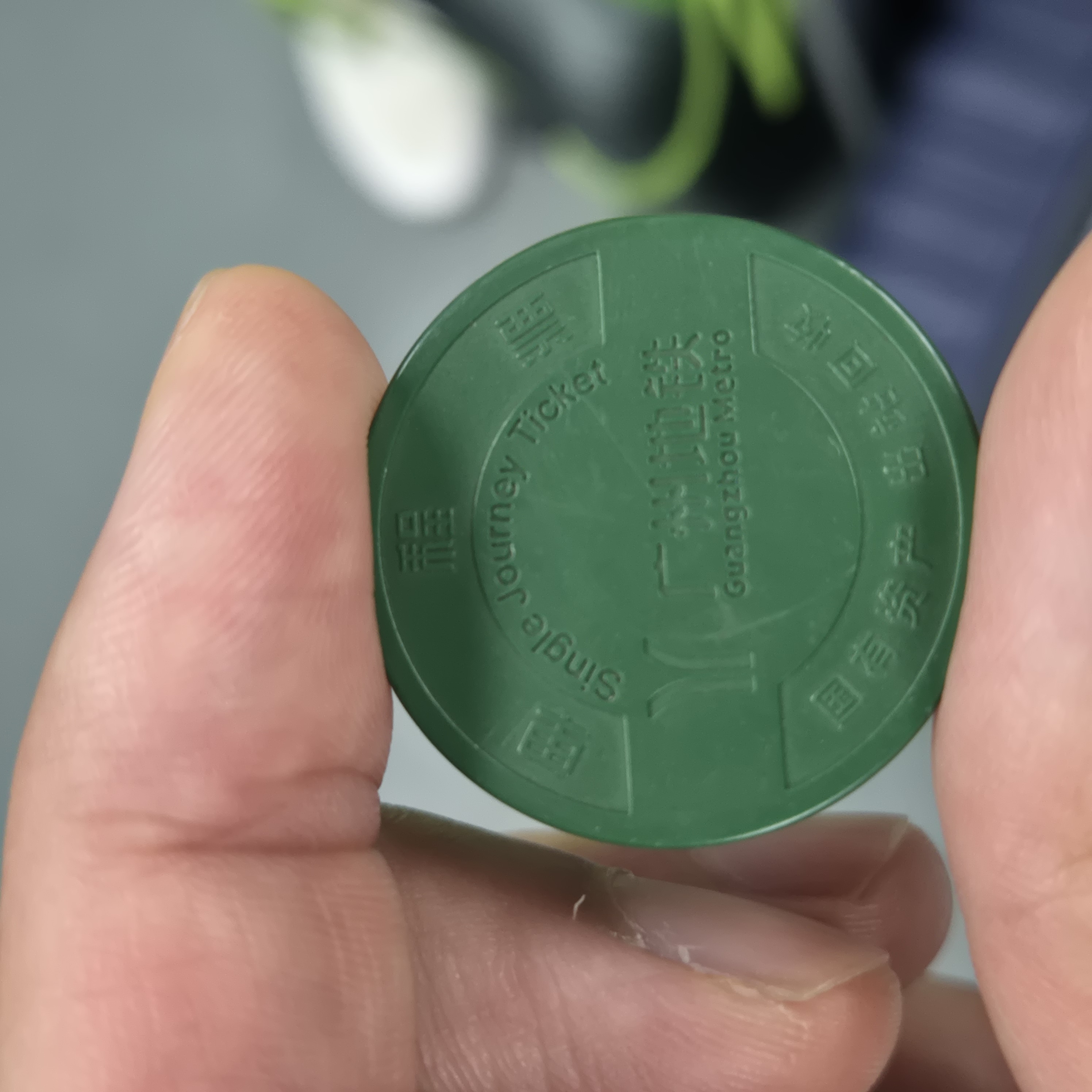 이 사진처럼 100원짜리 동전 크기에 초록색 플라스틱이 중국 지하철 토큰이다. 우리나라랑 똑같이 지하철 개찰구 앞에서 일회용 토큰을 판매한다.