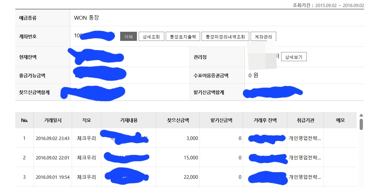 증여 상속 등, 개인 금융거래 기록10년치가 필요할 때가 있다. 증빙자료로는 어려울지라도 대충 감을 잡는데는 은행 거래내역조회로도 충분하다. 나는 주로 한 가지 은행만 거래해 왔기 때문에, 우리은행 한곳만 거래 내용만 조회해도 충분할 것 같다.