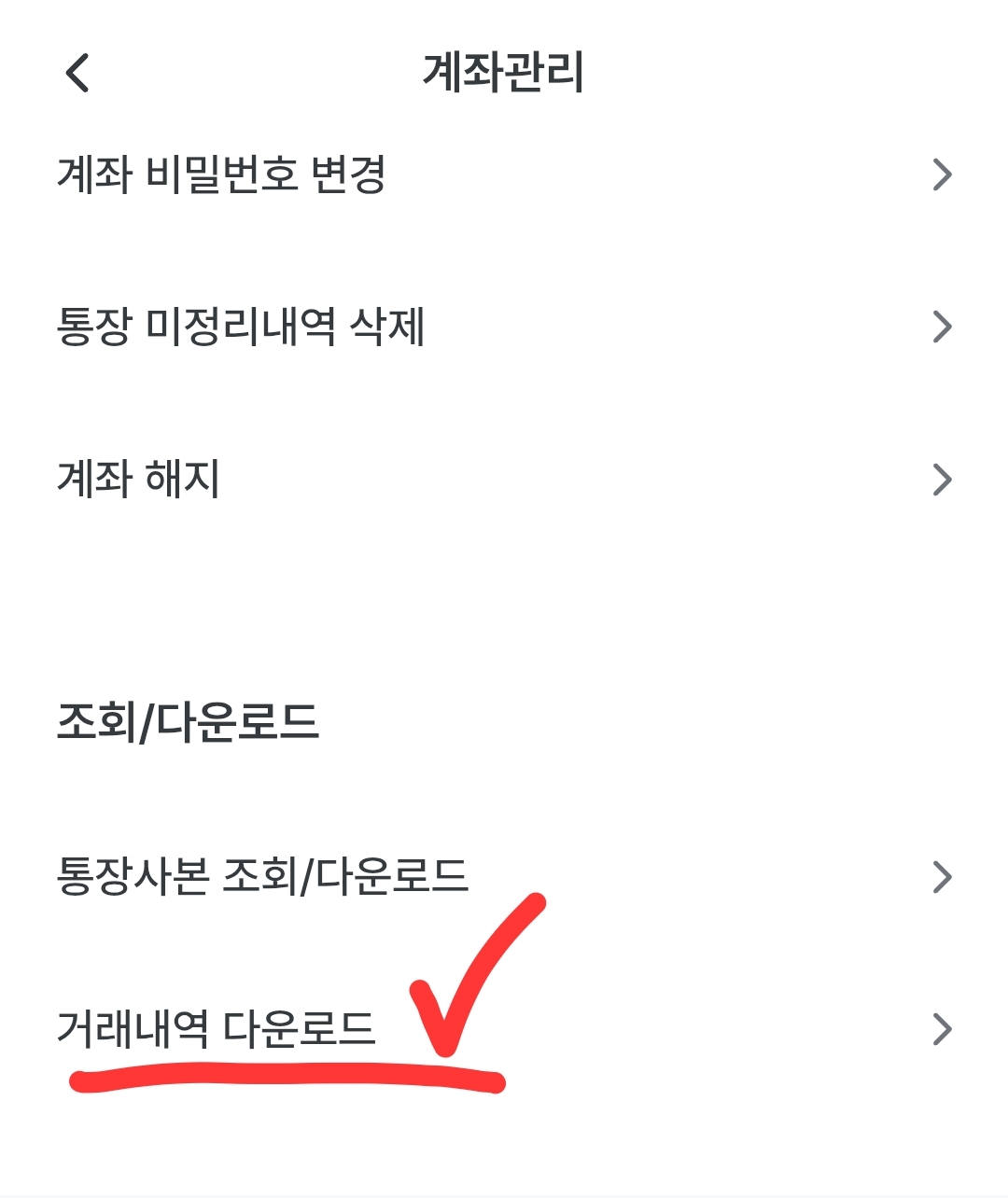 그럼 아래쪽에 거래 내역 다운로드가 있다. 오 이렇게 쉽게 목적이 달성되는 건가!?