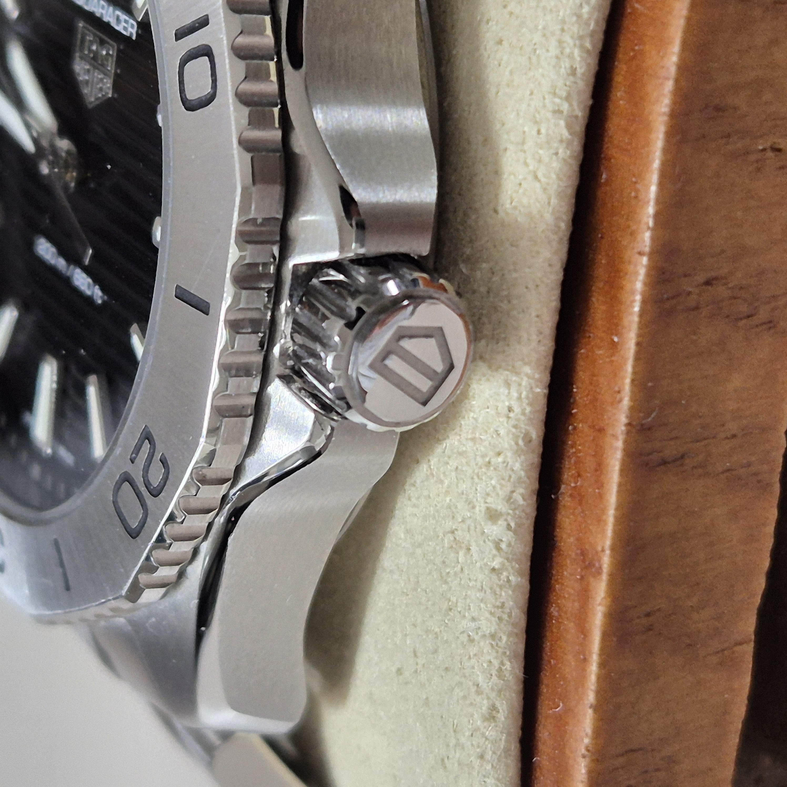 방수가 200m이기 때문에 스크류 방식에 용두를 사용하고 있다. 그래서 시간을 맞추기 위해 용두를 돌려주기 위해서는 일단 나사를 푸는 것처럼 용두를 돌려서 풀어 주고 시간에 맞춰야 한다.