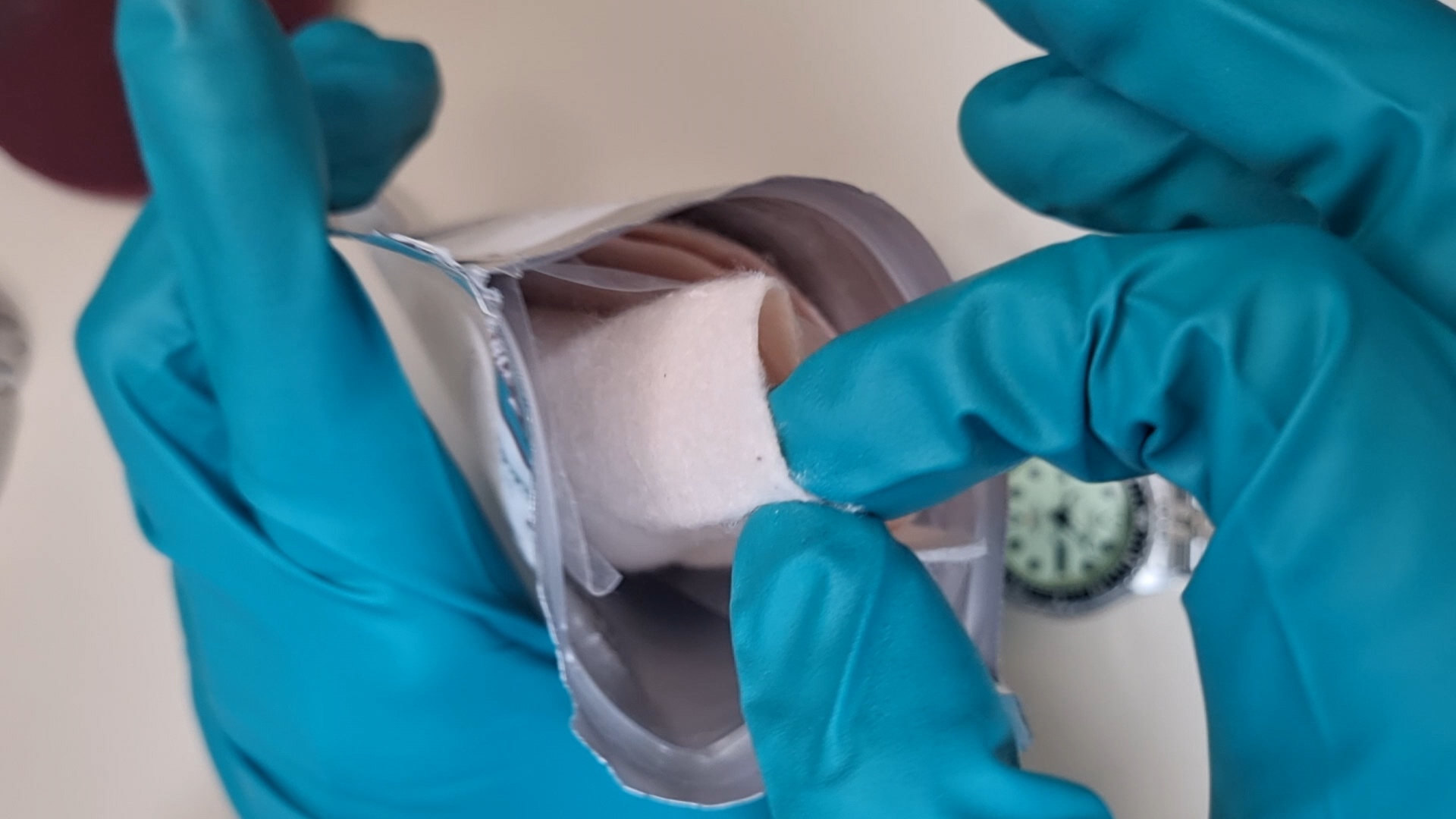 아까 플러싱은 금속 분진이 많이 날려서 장갑을 착용해야 했지만, 이 폴리싱은 화학 약품이 너무 많이 묻어 나와 장갑을 착용해야 한다.