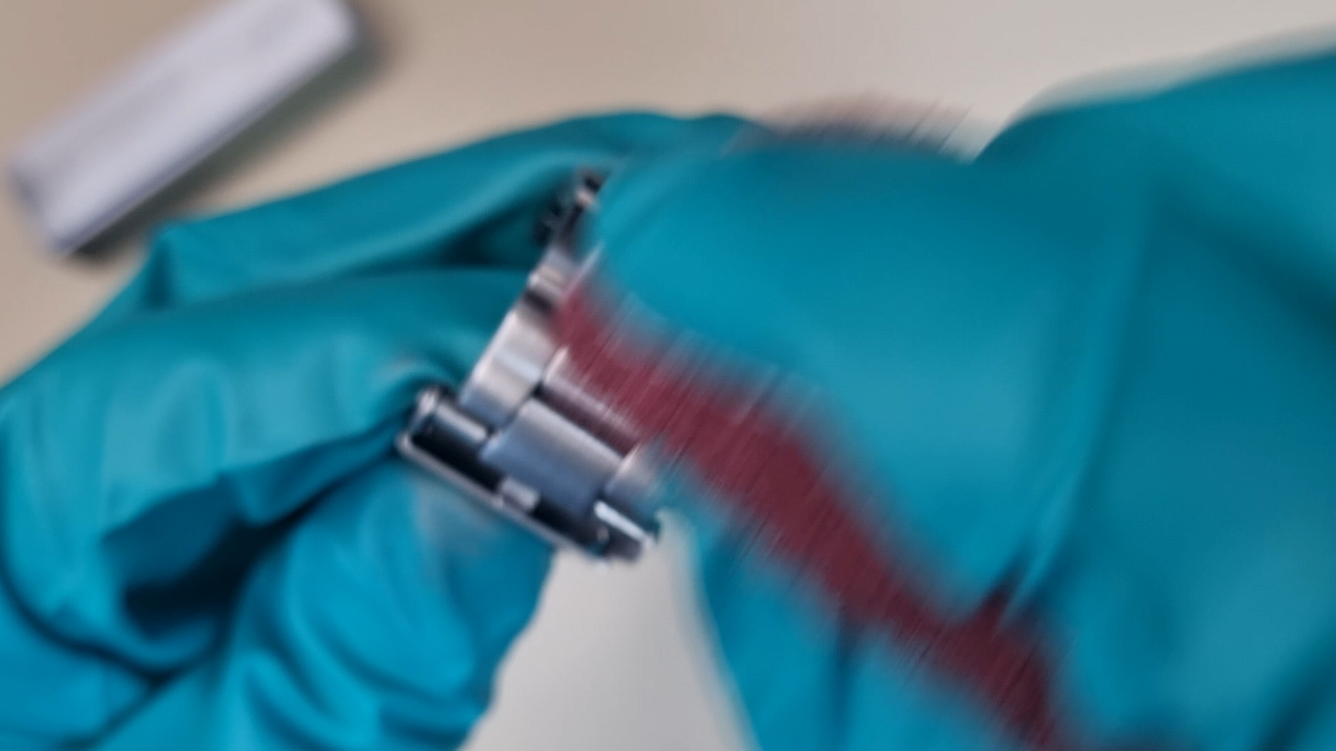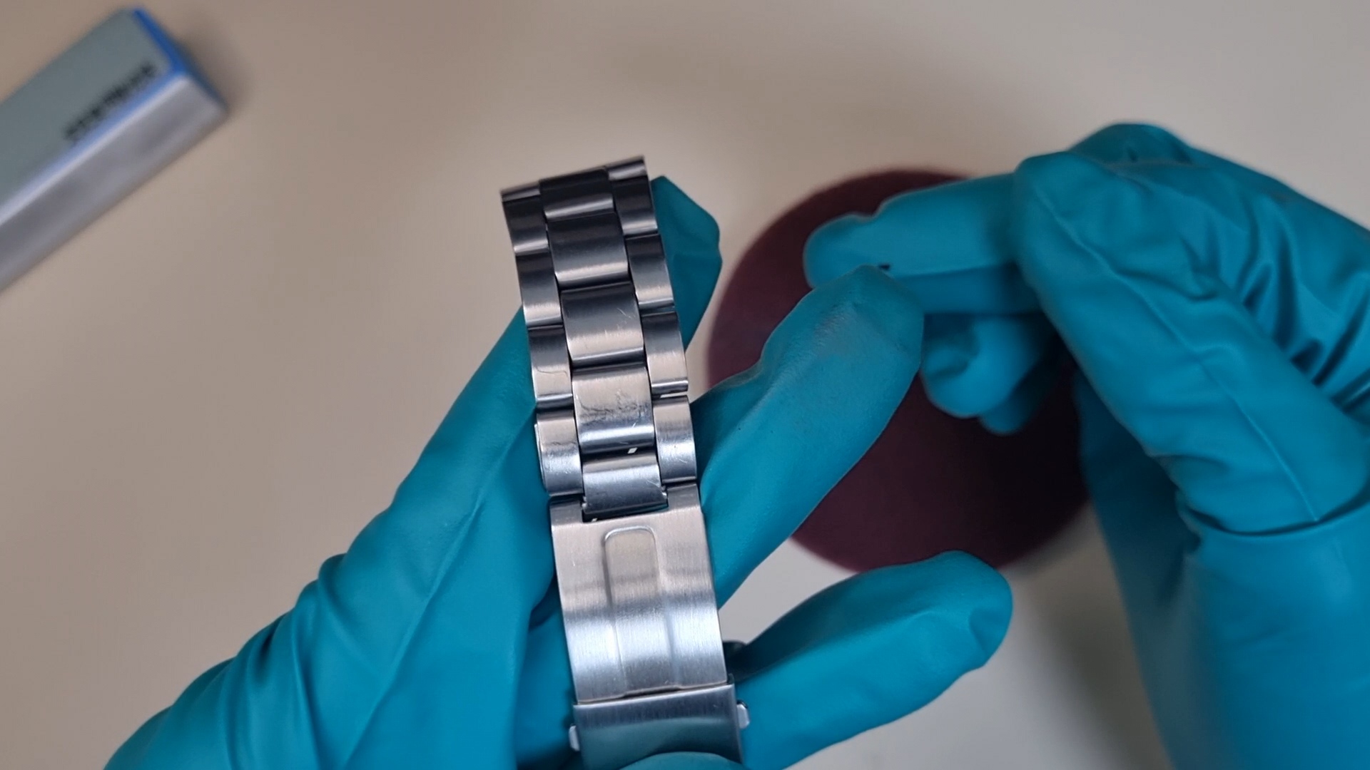 시곗줄을 바닥에 펼치고 작업을 했더니 시계가 접히는 부분은 잘 작업이 되지 않았다.