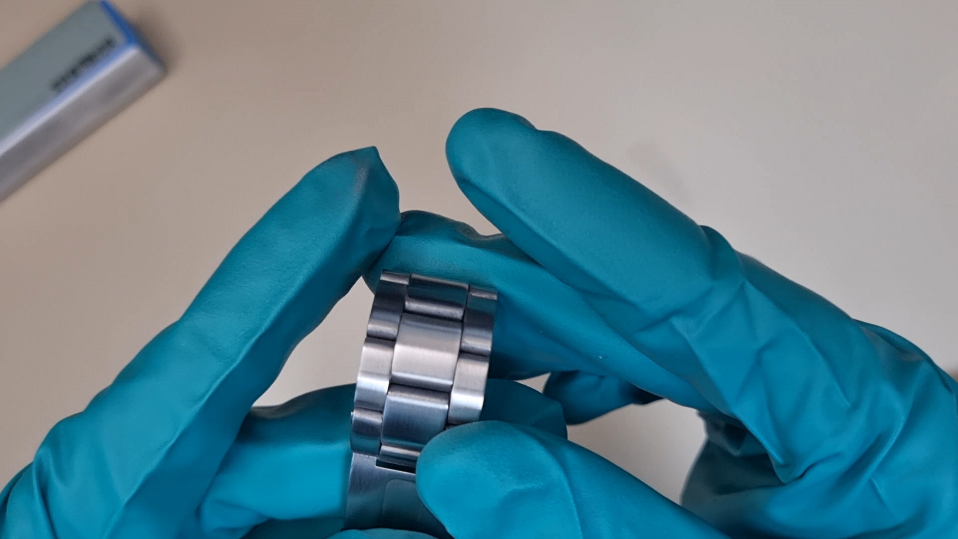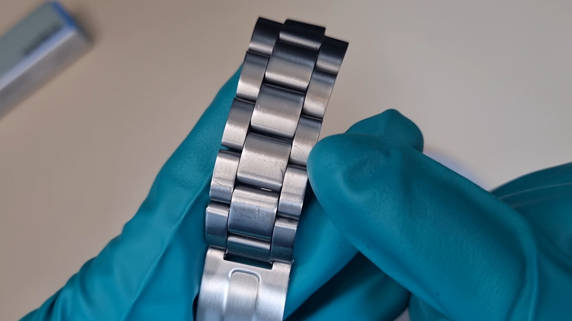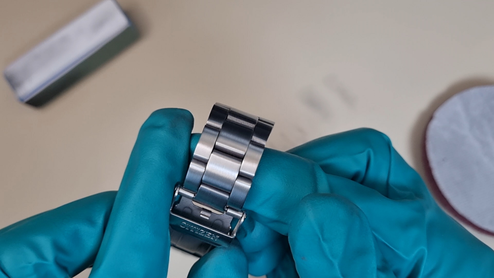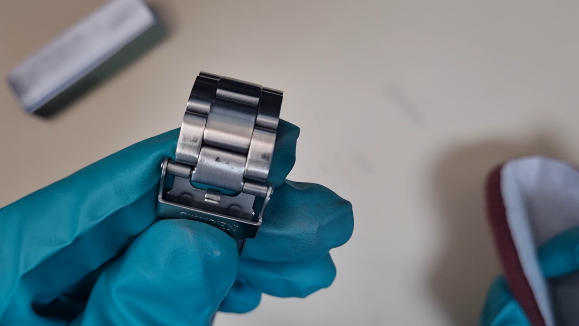 두 가지 수리 방법이 약간 다르니 먼저 일정한 결을 갖고 있는 시곗줄의 기스를 제거해 보자.