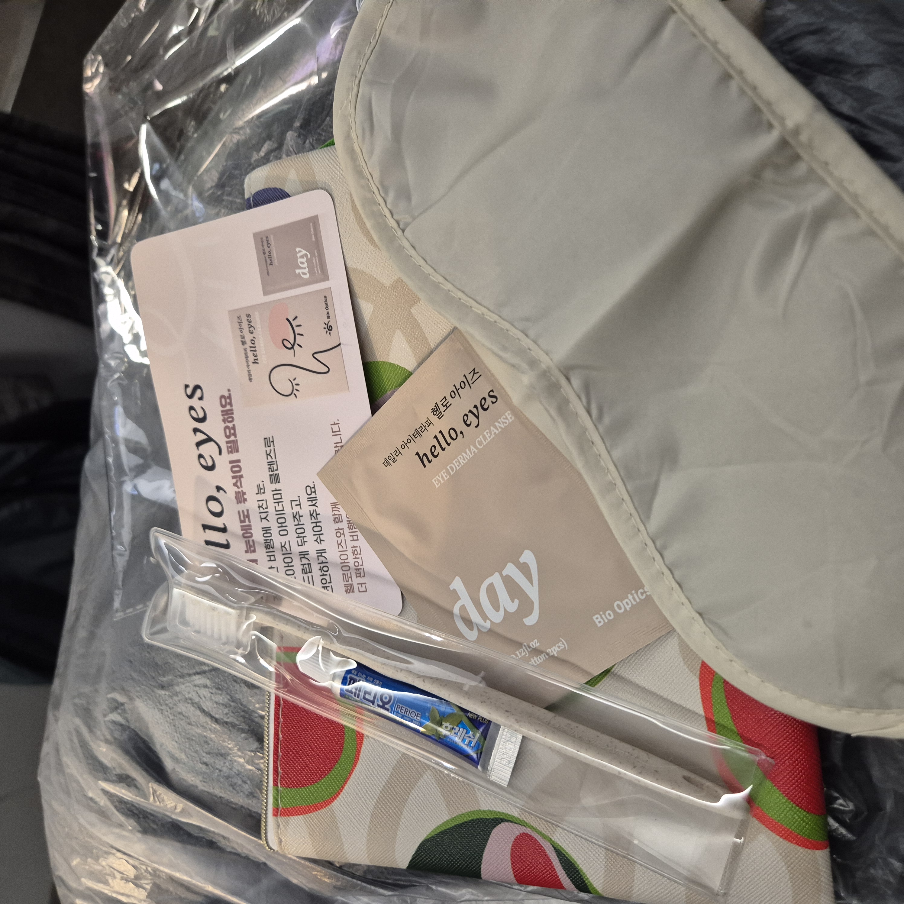 파우치 안에는 치약/칫솔, 안대, 눈꼽제거?제가 있었다.