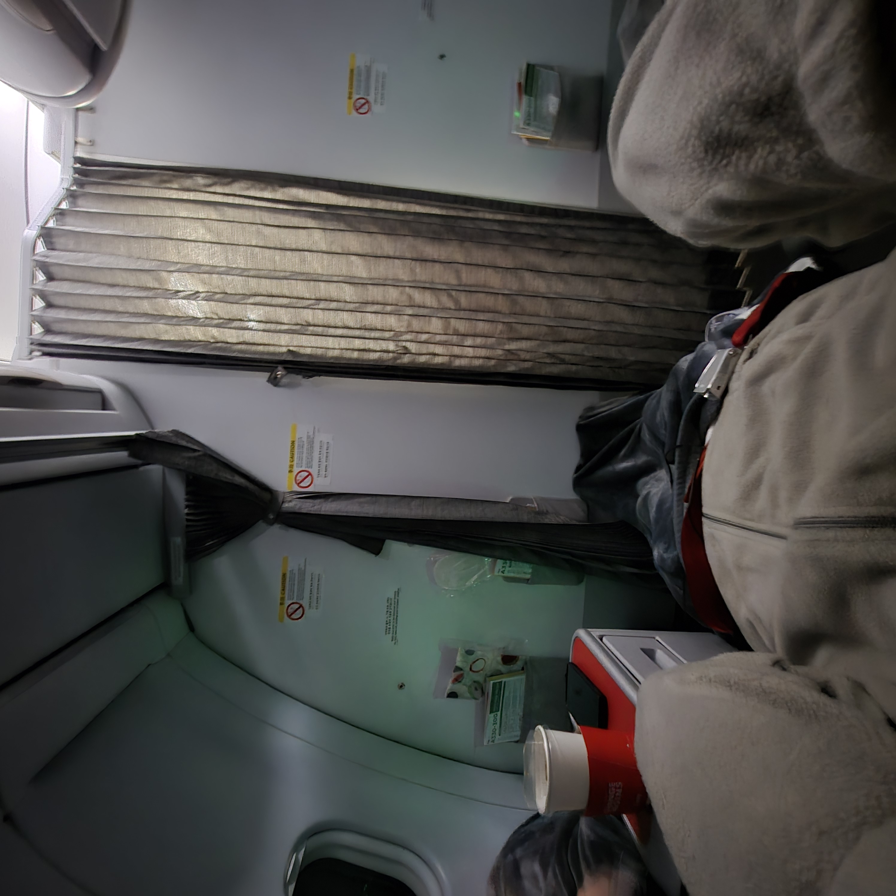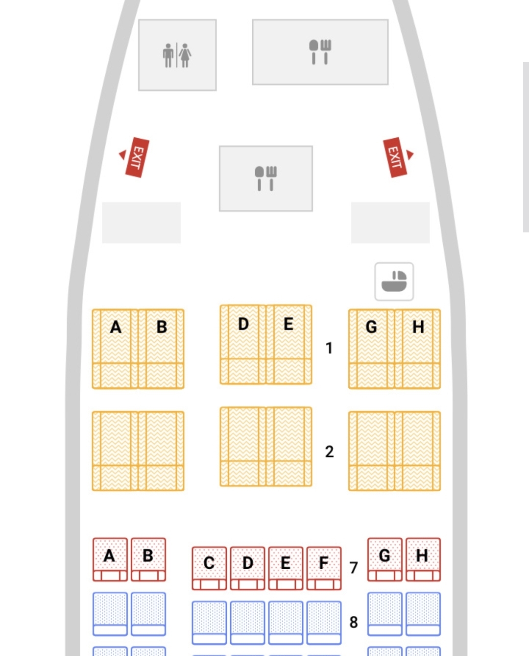 너비로는 이코노미 8명이 앉는 자리를 6명이 나눠앉으니 그만큼 넓어지고, 앞뒤 폭으로는 대략 창문 3개를 쓰고있어 일반적으로 1개인 이코노미보다 확연히 넓었다.