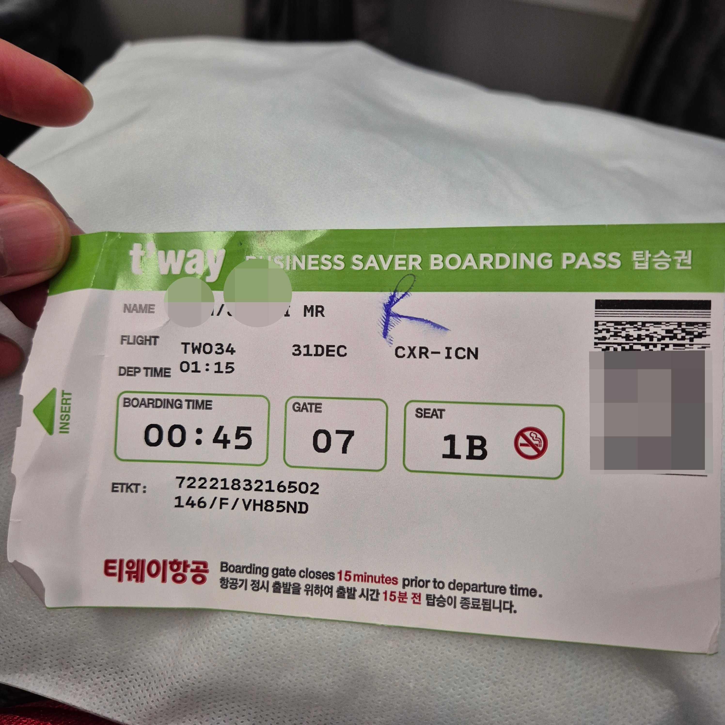 티웨이타고 나트랑갔다오는길 몸이 안좋아 체크인 시 비즈니스석 자리 남는지 물어보고 있다해서 업그레이드 하였다.