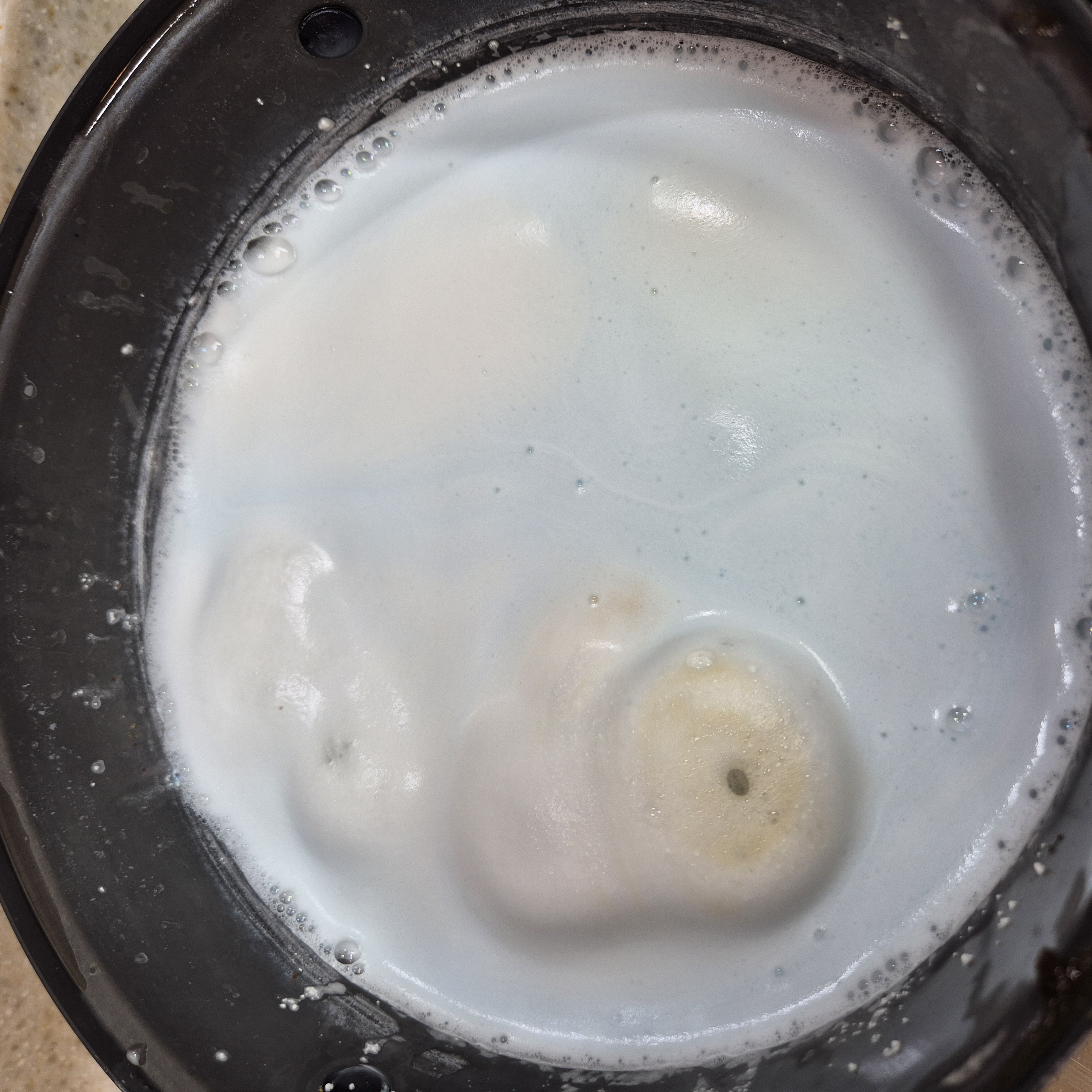 계면활성제가 있어서 그런가, 끓이면 엄청난 거품이 난다. 신기하게 탄 부위에는 탄화색인 누런색 거품이 위 사진처럼 뽀글뽀글 튀어나오는게 아주 재밌고 효과가 있어 보인다.