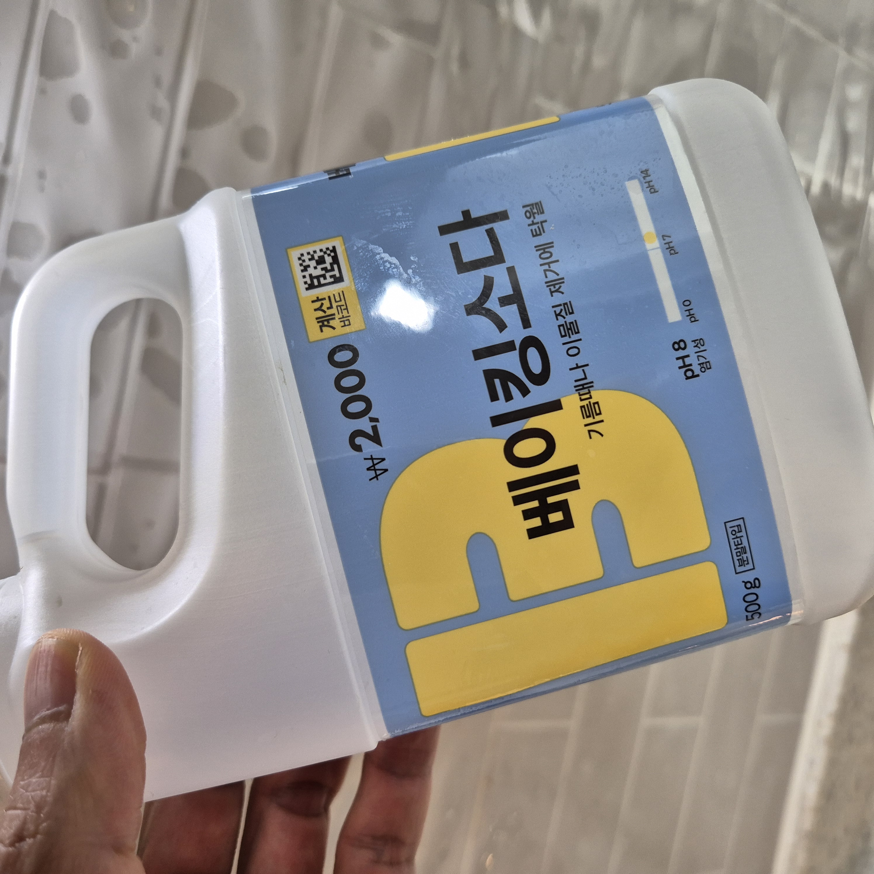 베이킹소다(pH8)보다 약 1000배 강한 과탄산나트륨(pH11)을 시도한다.