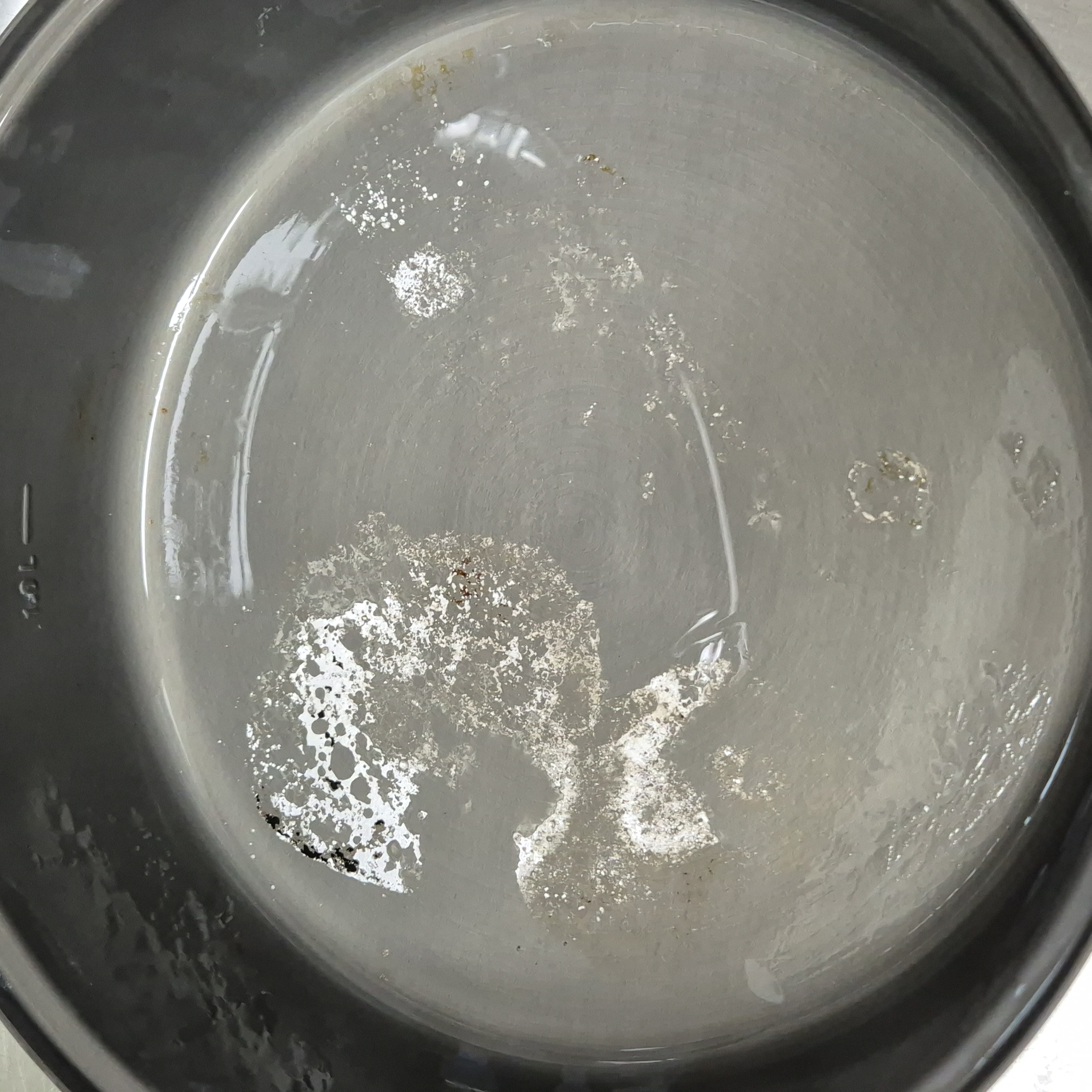 식힌 후 가볍게 솔질 한 것이다.(철수세미로 문지를 수 있겠지만 그러면 냄비 코팅이 다 벗겨져 탄걸 제거하는 것보다 더 손해다)