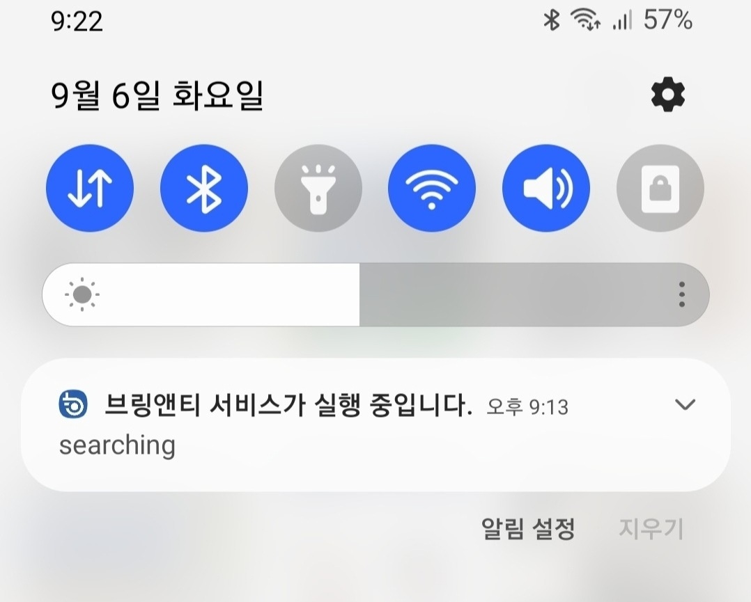 그런데 앱 내 설정에서는 위 알림을 지울수는 없고, 갤럭시 설정에서 강제로 브링앤티 전체 알림을 없애는 걸로 상단바 상시알림을 없앨 수 있었습니다.(덕분에 오토도어 외 다른 브링앤티 알람도 못 받게 되었습니다.)
