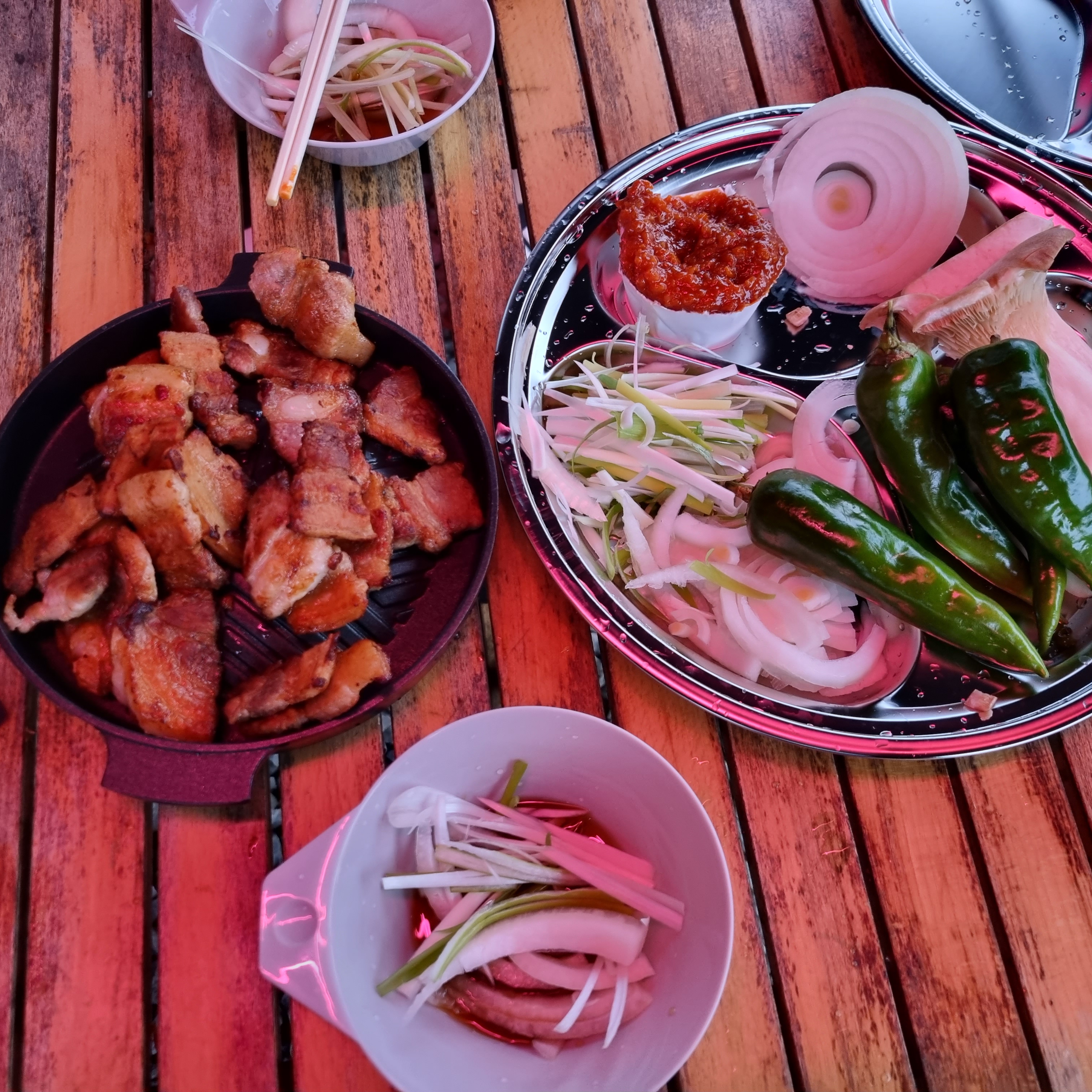 숱한 글램핑과 펜션을 통해 숯불구이의 번거로움과 부질없음을 느낀 저희는 이번 여름부터 버너로 고기를 굽고 있습니다..