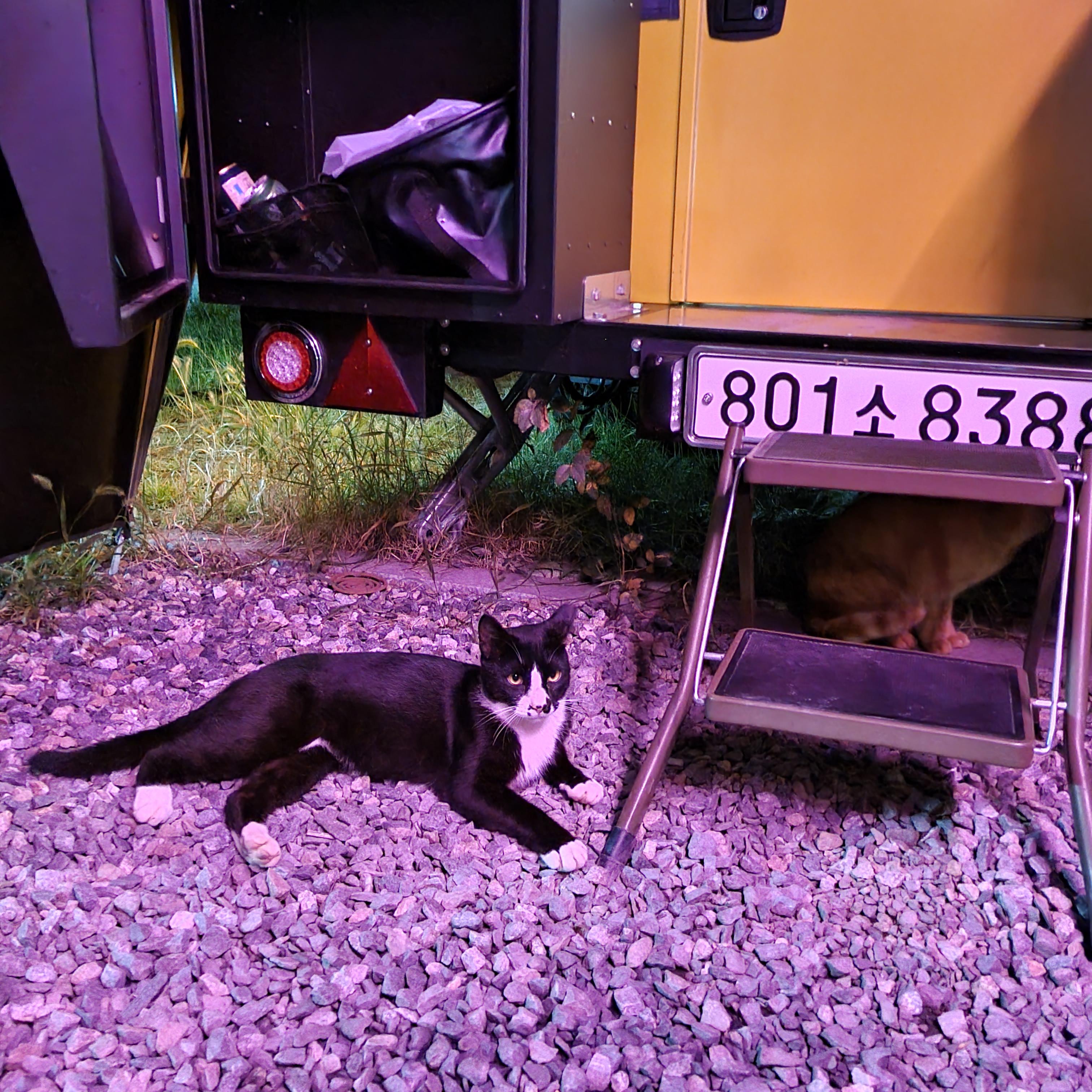 터줏대감인지.. 고기를 구울때 때를 맞춰서 아주 여유롭게 사람 주의를 멤도는 녀석들입니다. 검정녀석이 대장인지 고기를 주면 노랑이는 눈치를 많이보고 검둥이가 다 먹고 배불러야 먹더라고요ㅜ