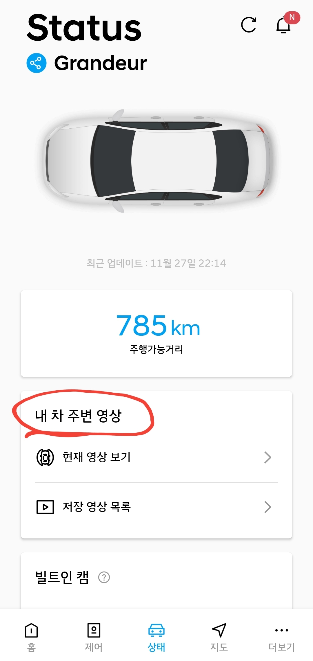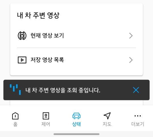 하지만 제 차는 어플을 몇번을 지웠다 깔아도 어플에 "내 차 주변 영상"이라는 버튼 자체가 없었는데, 오늘 갑자기 생겼습니다!!