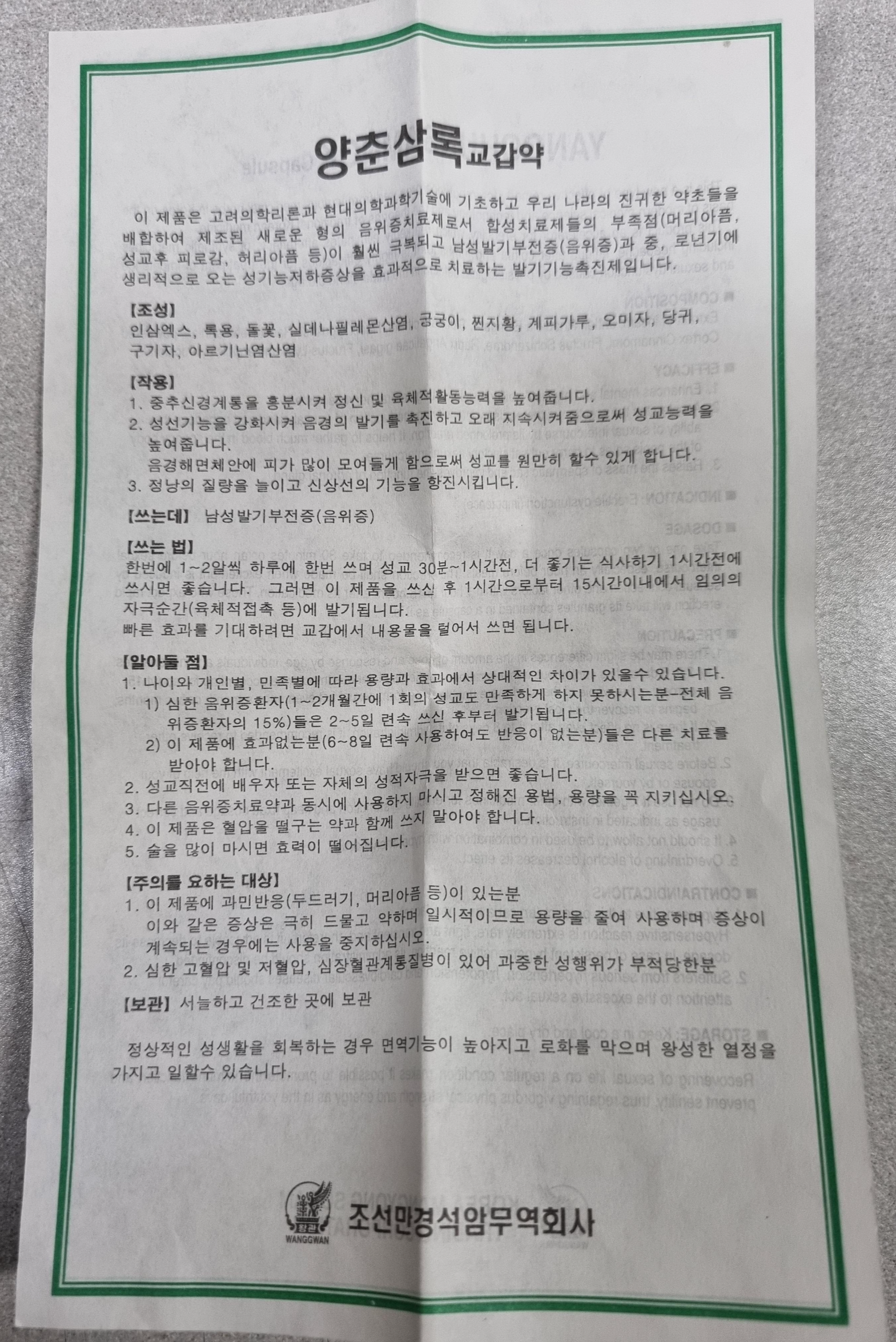[조성]에 인삼, 녹용 등 각종 한약재를 보고, '오 발기부전 치료가 생약으로만 가능했던것인가?'라고 생각할 수 있지만..