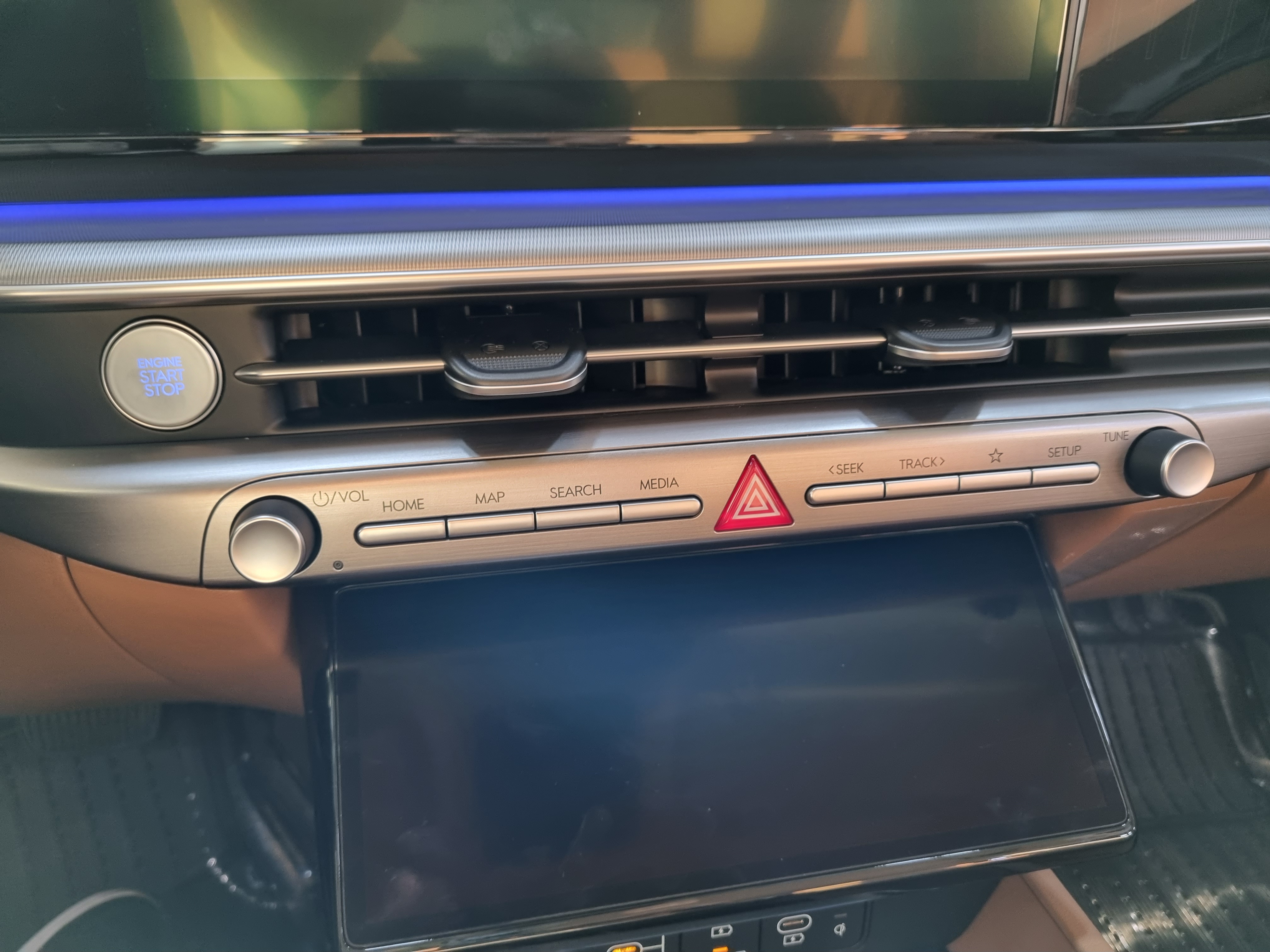 2개의 12.3인치 액정이 나란히 있는 것과 그 아래로 공조기 라인이 일직선으로 뻗은 것도.