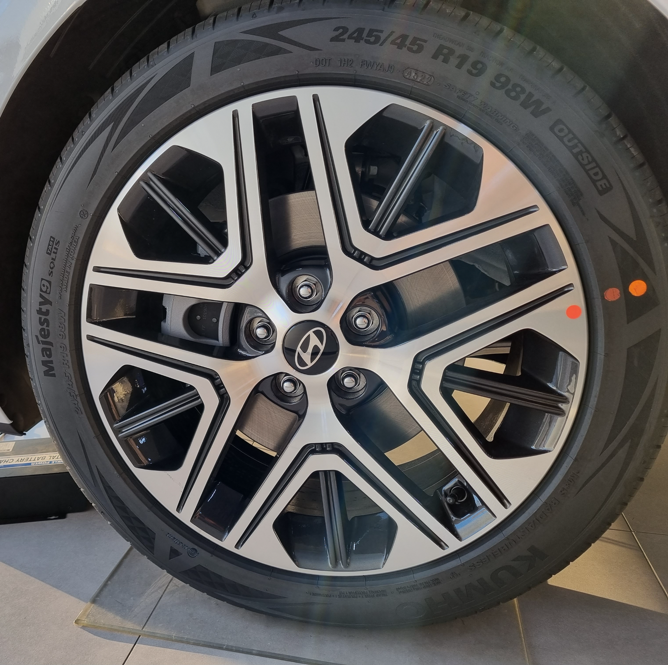 이 전시모델은 가장 낮은 등급인 프리미엄인데 19인치 휠이 들어갑니다.
