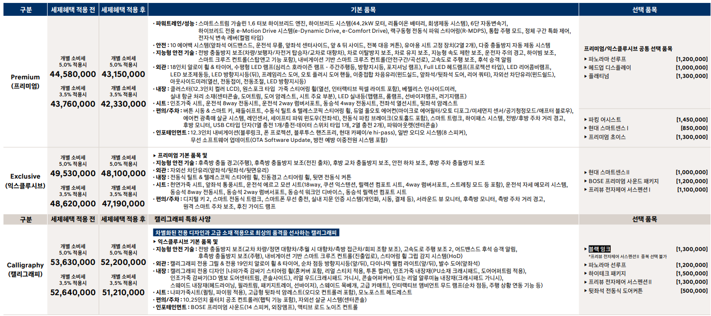 그런데 리클라이닝, 전동 도어 썬쉐이드 등 추가되는 옵션과 1.6T 하이브리드 시스템으로 변경된 부분도 고려하면.. 잘모르겠습니다@@