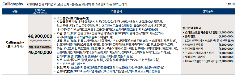가장 높은 등급인 캘리그래피는 20인치 휠이 들어간다고 합니다.