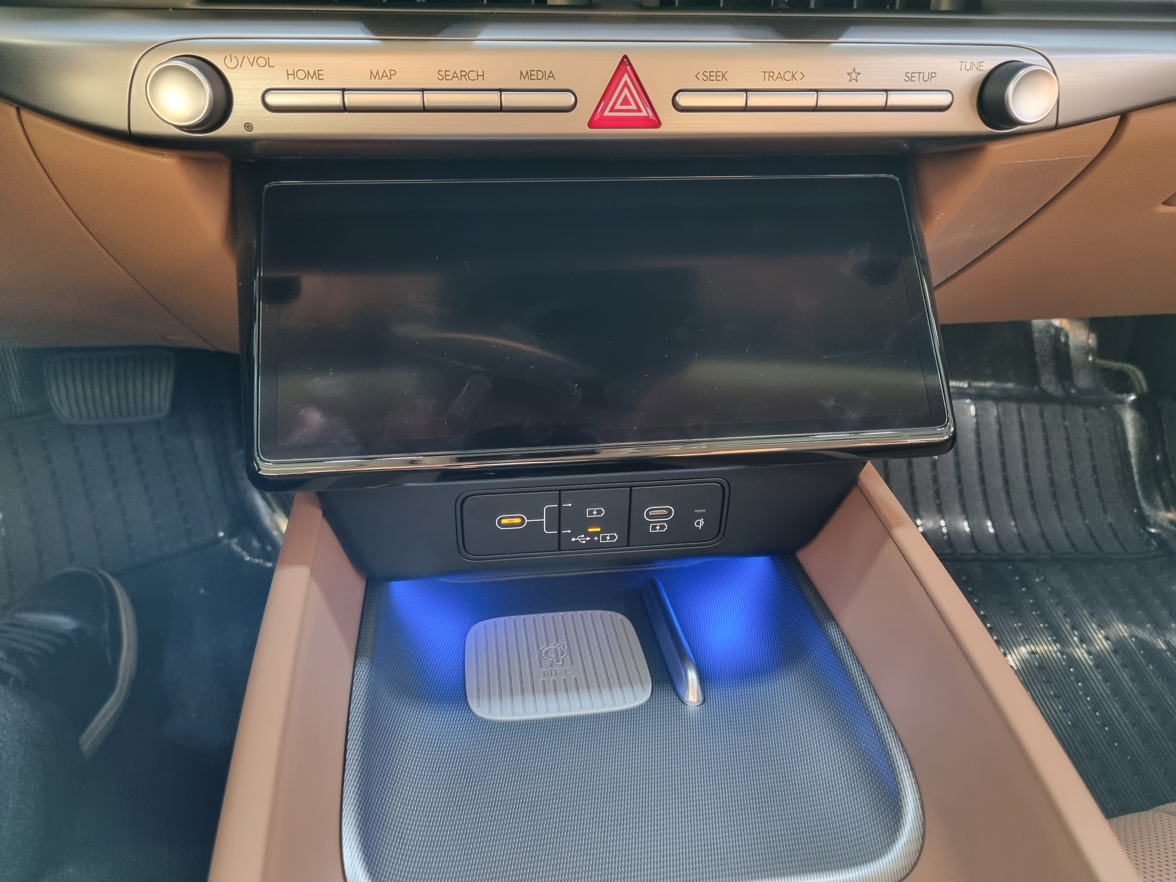 컬럼식 기어가 들어가면서 센터에 기어봉/기어버튼이 모두 사라지고 광활한 핸드폰 충전구역이 생겼습니다.