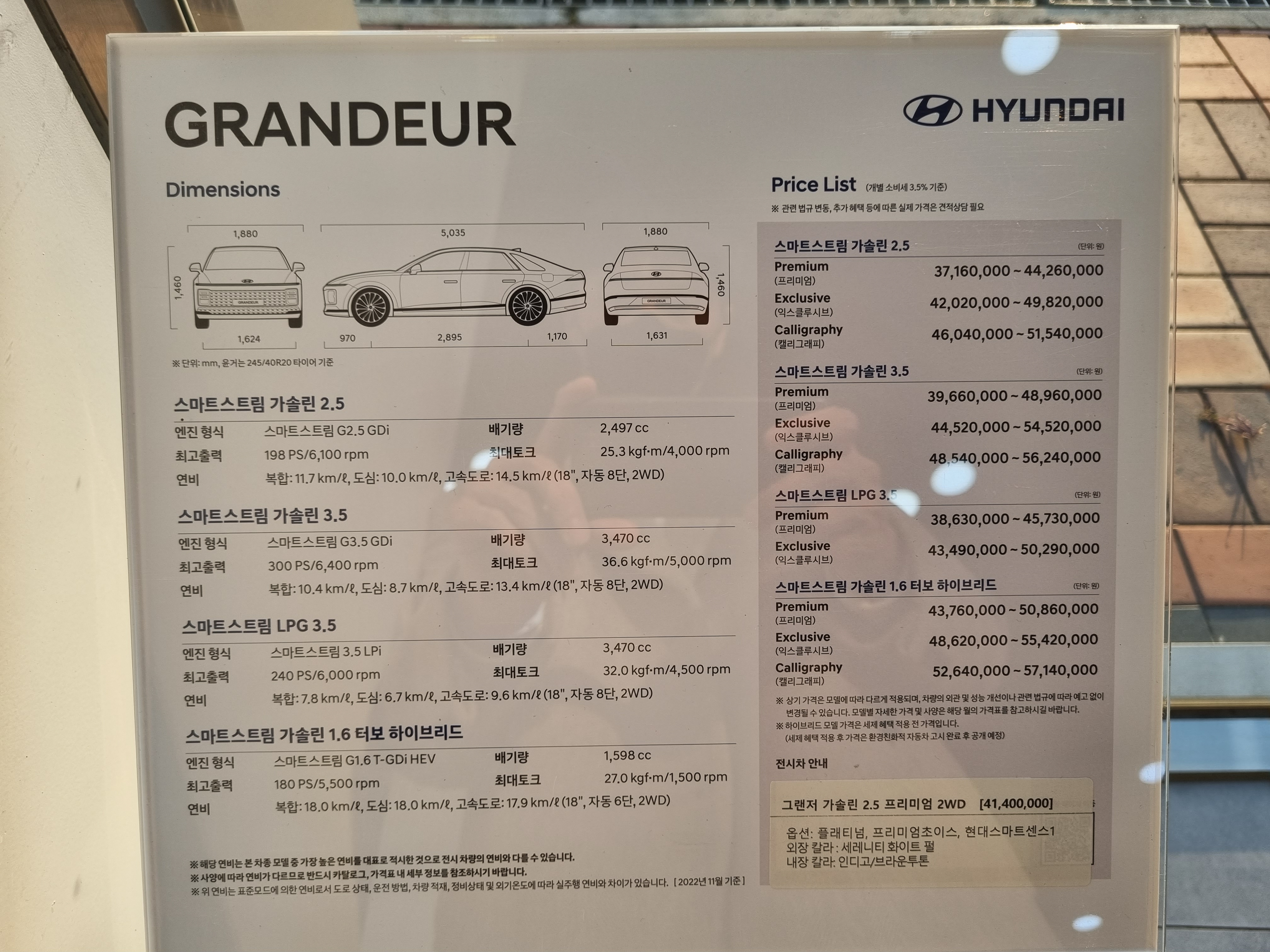 지금까지 살펴본 전시모델은 그랜저 가솔리 2.5 프리미엄 2WD입니다.