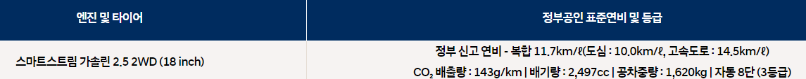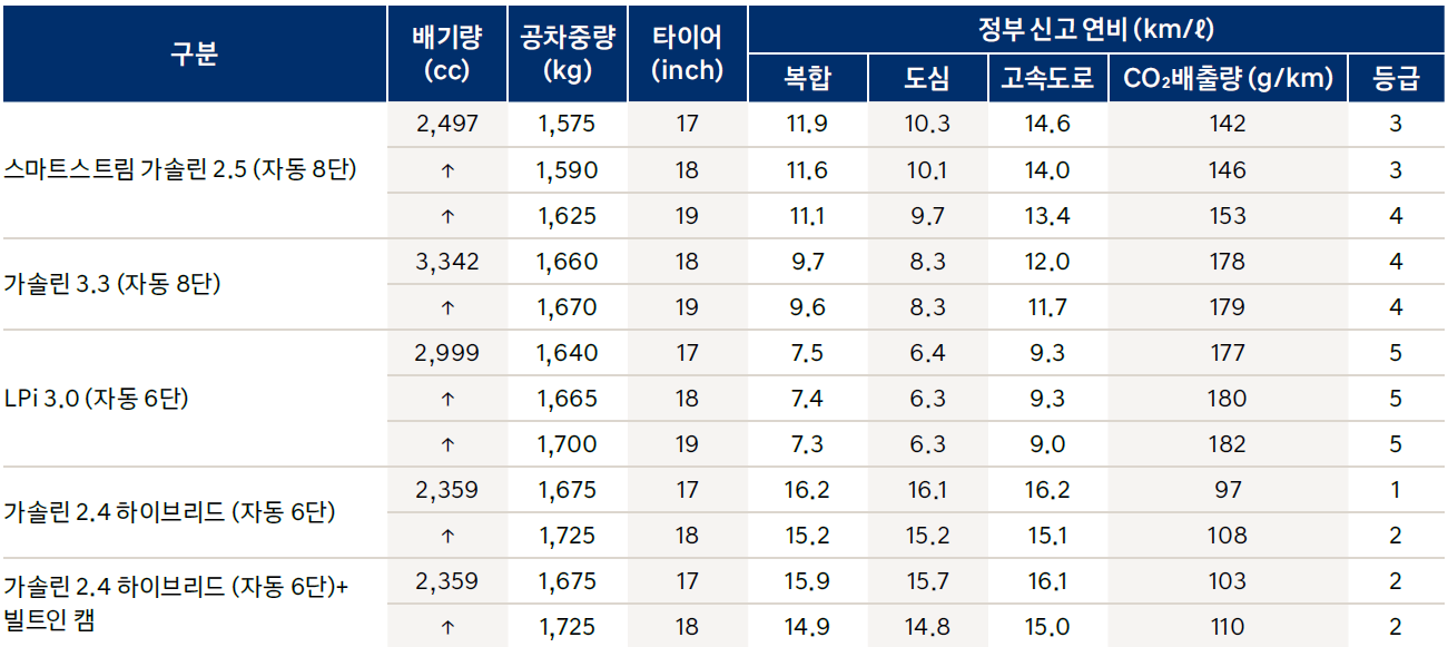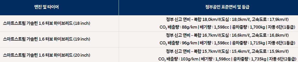 같은 18인치를 기준으로 IG(구형)는 15.2 km/l, GN7(신형)은18.0 km/l로 상당히 좋아졌습니다.
