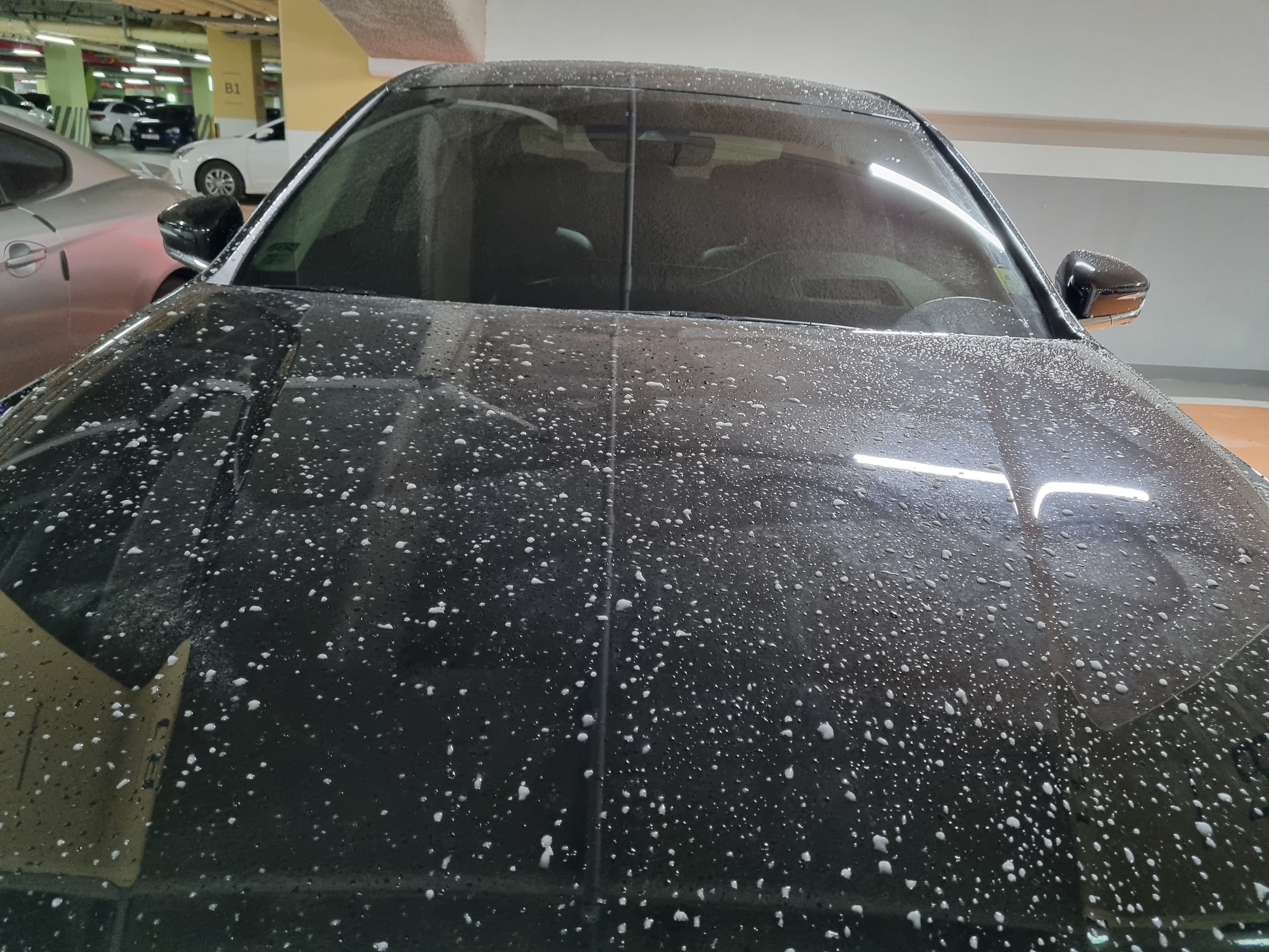 도저히 타월질은 할 수가 없어서 빨리 지하주차장에 넣어두고 자연건조시켜야지하고 세차장에서 바로 주차장으로 왔습니다.