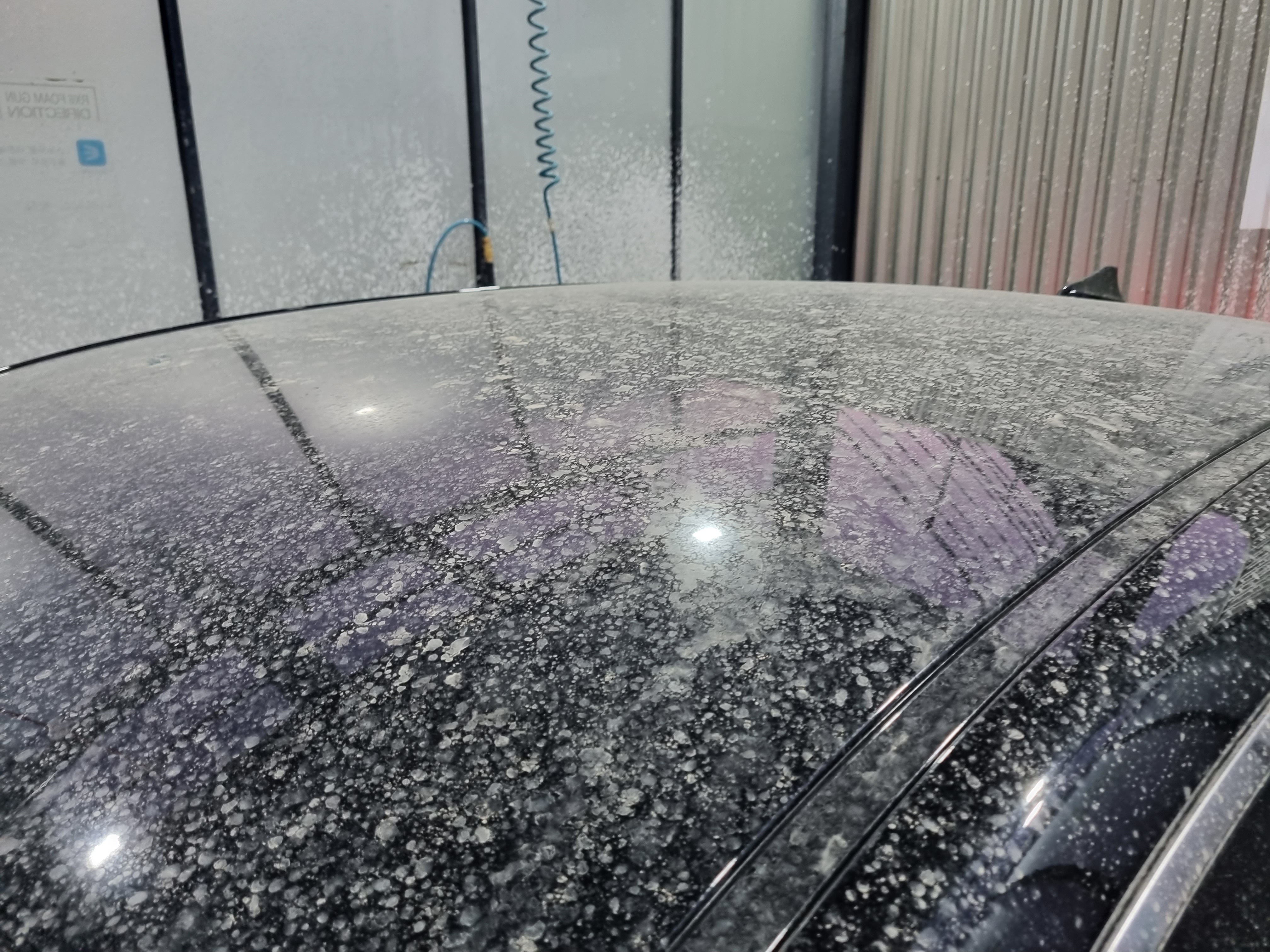 하지만 영하의 날씨에 도저히 스펀지를 잡을 수는 없고, 그냥 고압수로 저 자국만이라도 없애보고자 합니다.