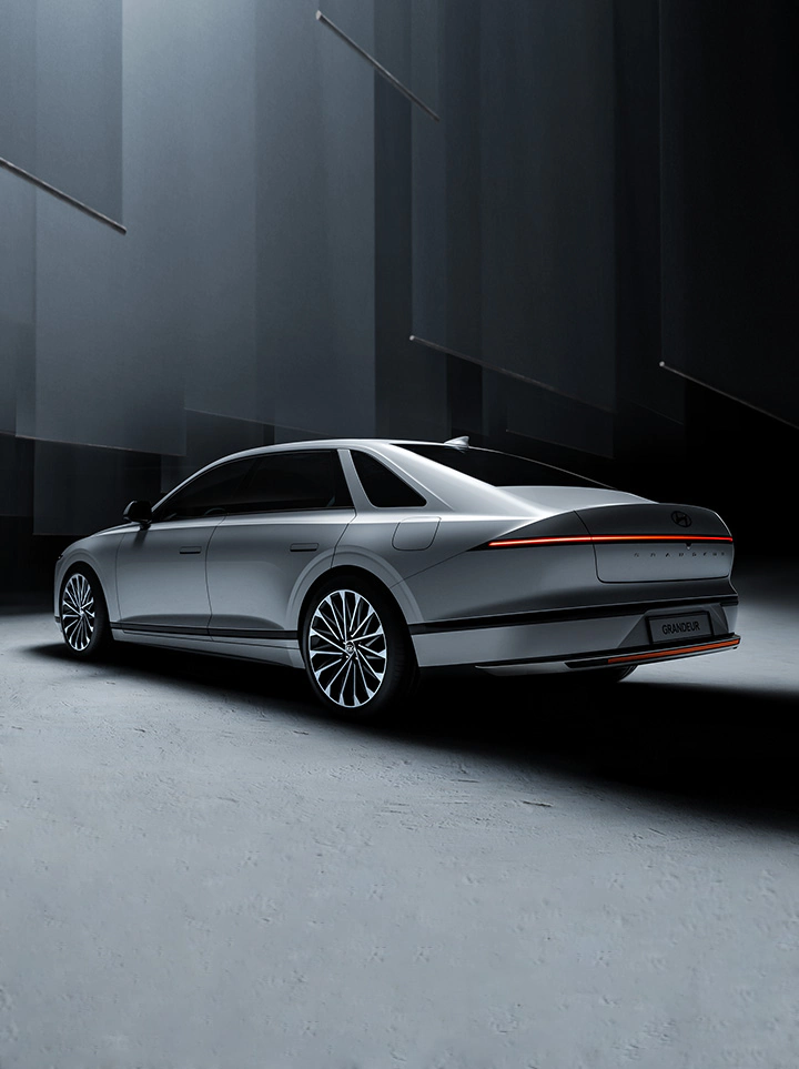 얇고 매끈한 헤드램프와 테일램프가 특징인 그랜저 신형입니다.