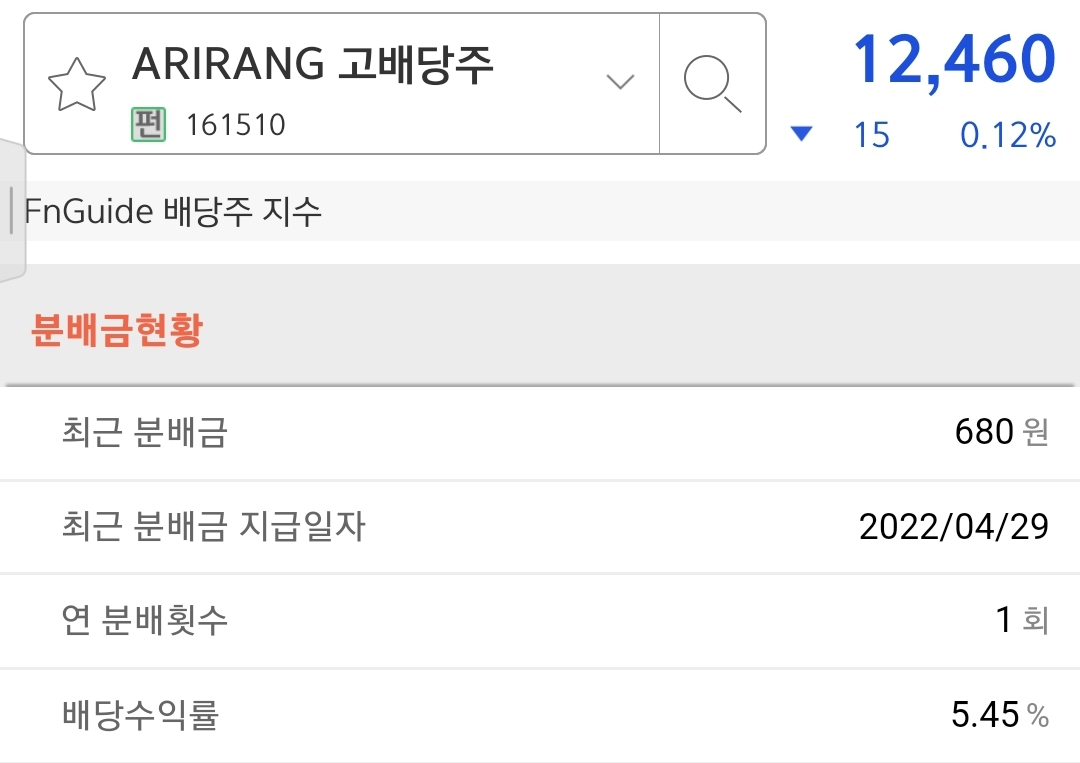 그래서 선택한 ETF는 바로 ARIRANG고배당주 입니다.