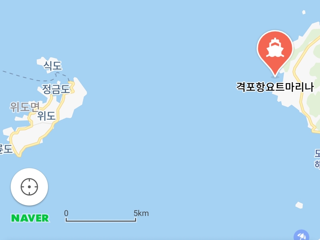 출발한지 1시간이 좀 안되 보이기 시작한 위도항구.