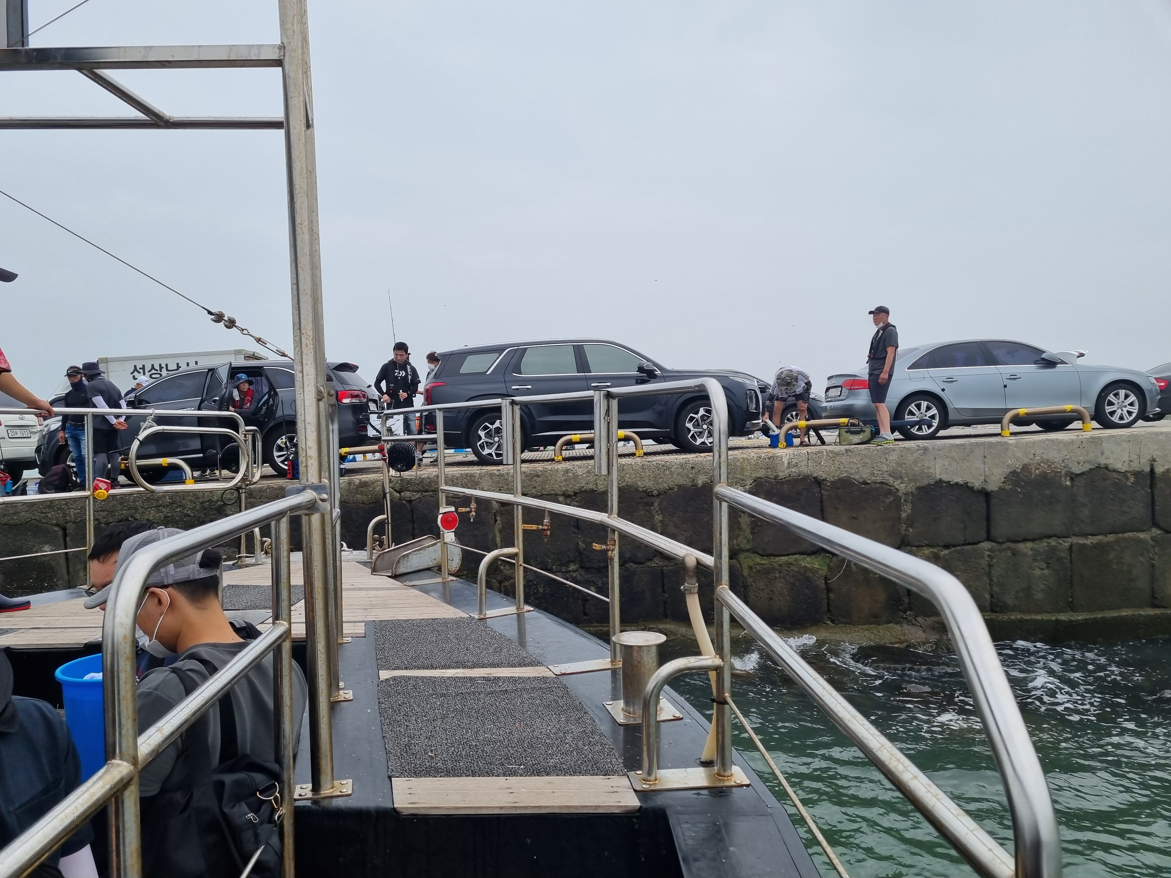 한바탕 낚시를 마치고 겨우 10시가 되어 돌아오는데, 선착장이 주차장이 되어있었다.