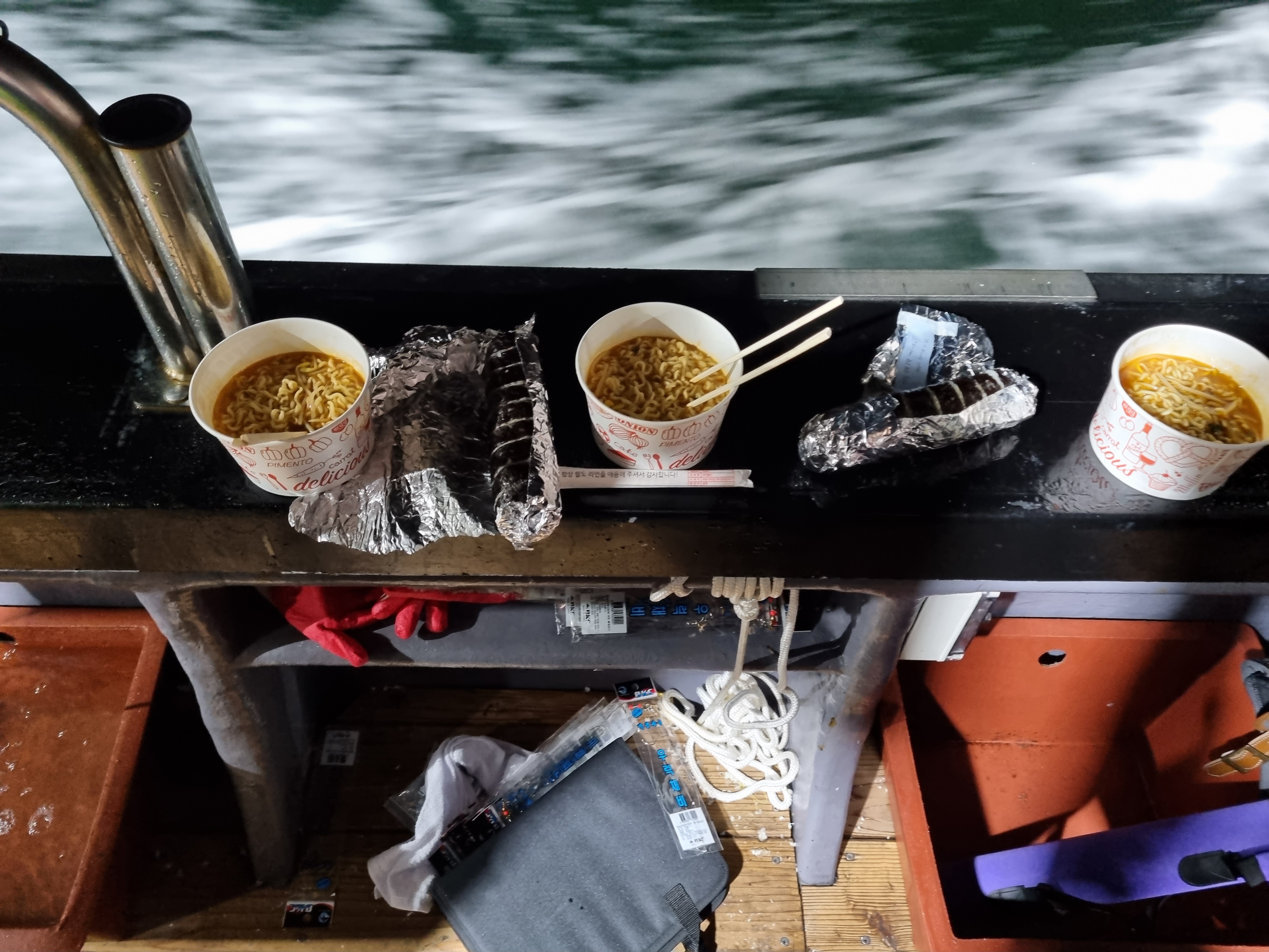 우리는 낚시엔 초보지만 먹는덴 전문가라 김밥도 함께 챙겨와서 든든하게 김밥+라면을 먹었다.(라면+김밥은 언제나 옳다)