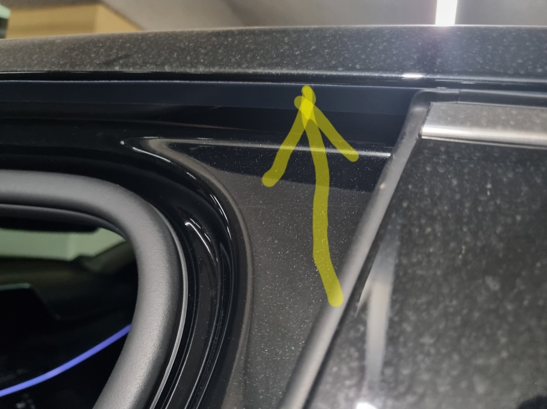 위사진의 화살표처럼 앞뒤 문을 다 열면, A필러부터 C필러까지, 즉 한번에 차 앞에서부터 뒤까지 쭉 실리콘테이프를 차대에 붙힐 수 있습니다. 글라스런에 붙히면 눈에 잘 띄고 부착도 잘 되지 않을 것 같습니다.