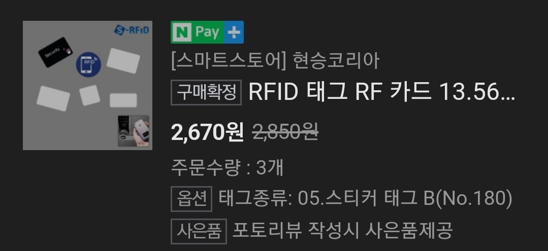 일단 RFID 스티커를 구매했습니다. (배송비가 더 비싼..)