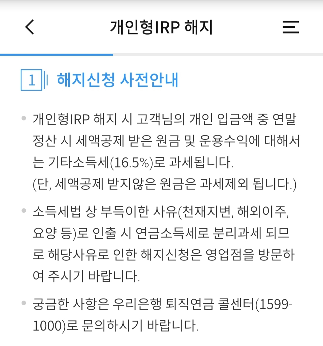 퇴직연금 IRP 해지
