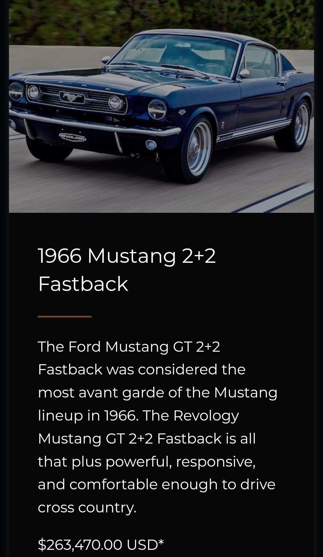 패스트백 머스탱. 26만불.